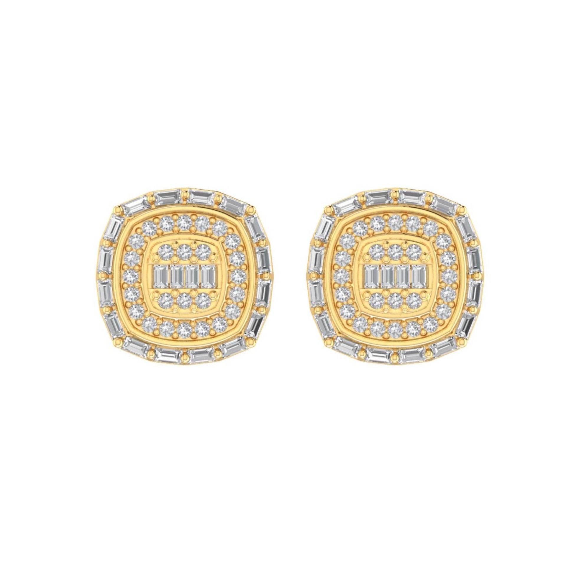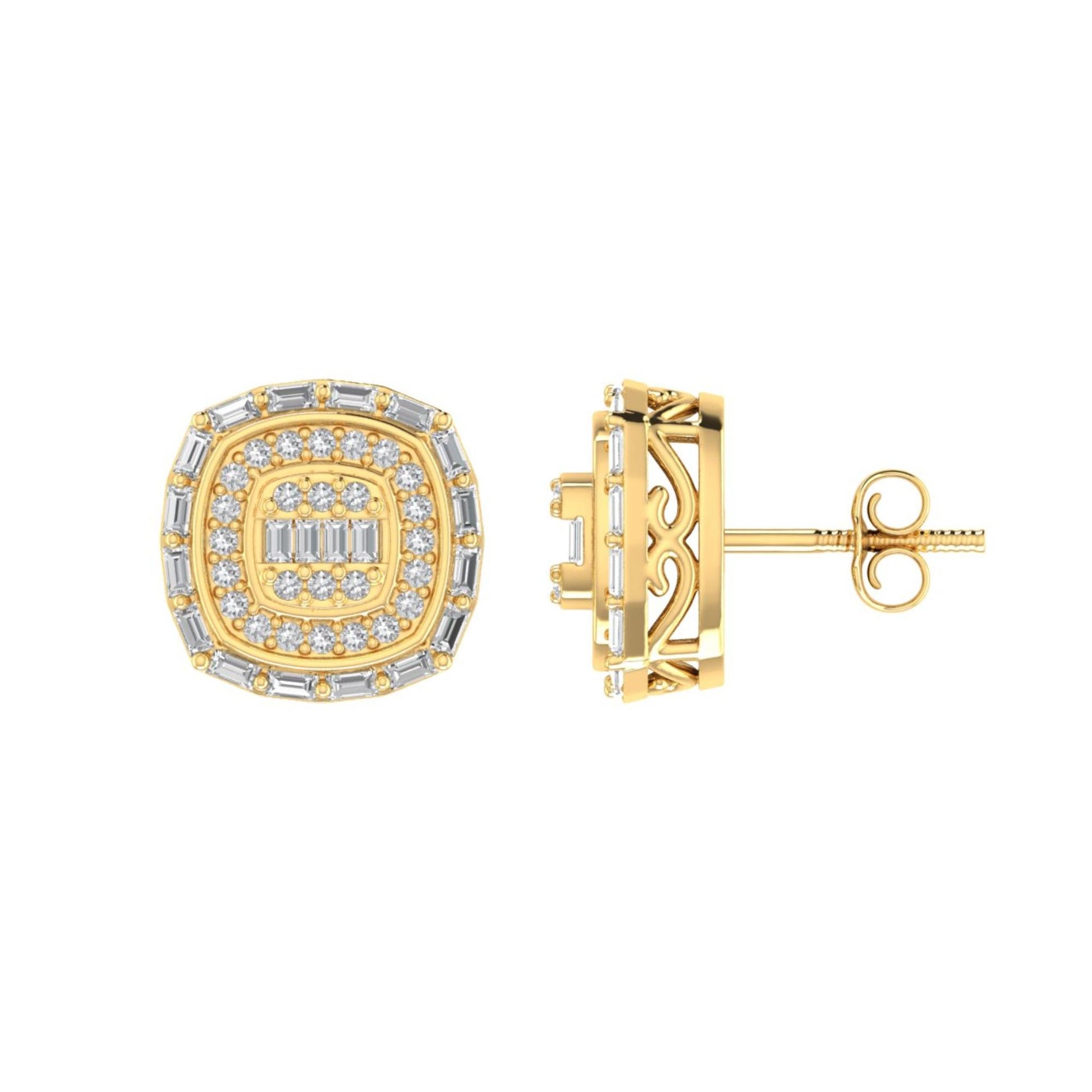 Sterling Silver Round Baguette Diamond Square Shape Designer Stud Earring RP+GP 1/3 Cttw