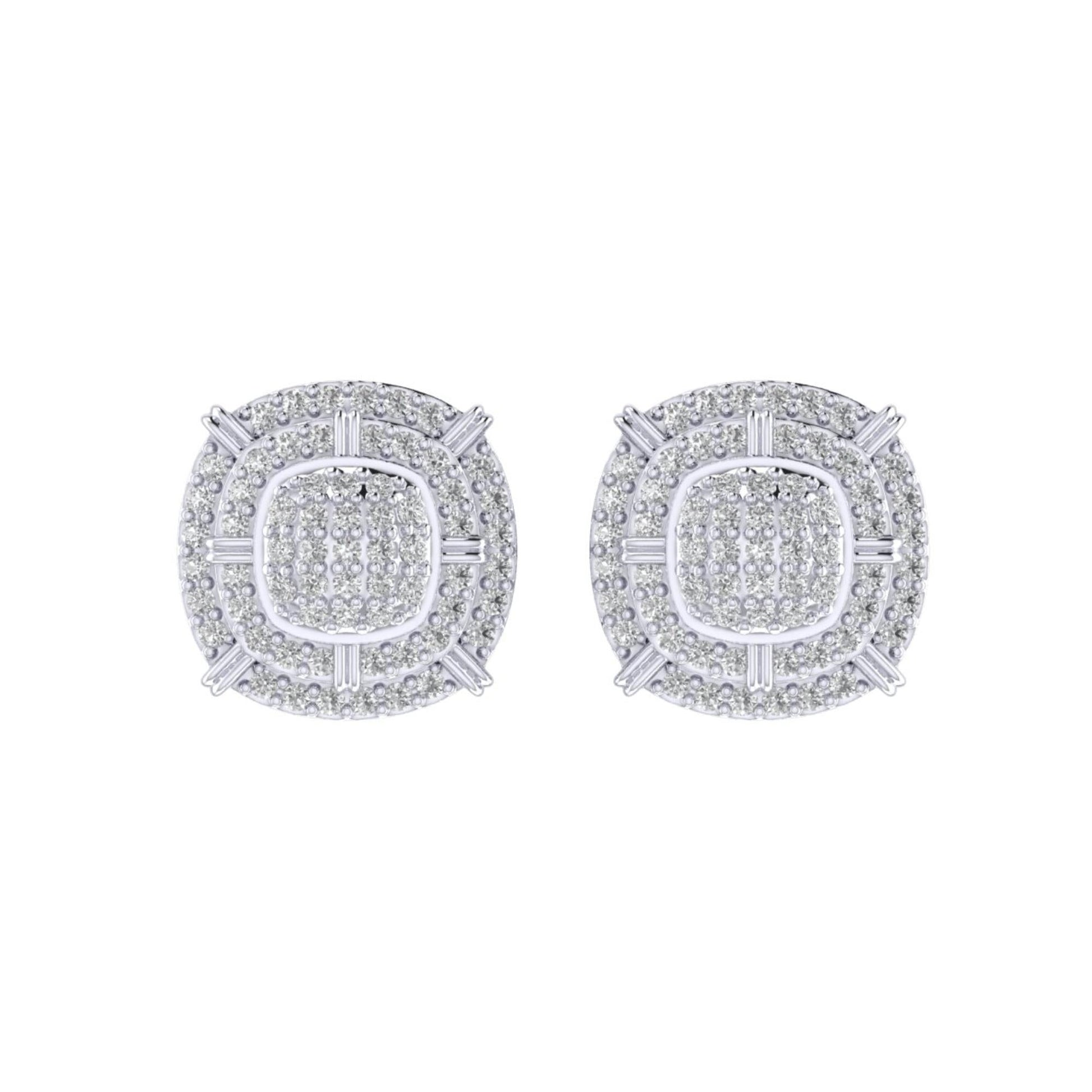 Sterling Silver Round Diamond Double Halo Designer Stud Earring RP 3/8 Cttw