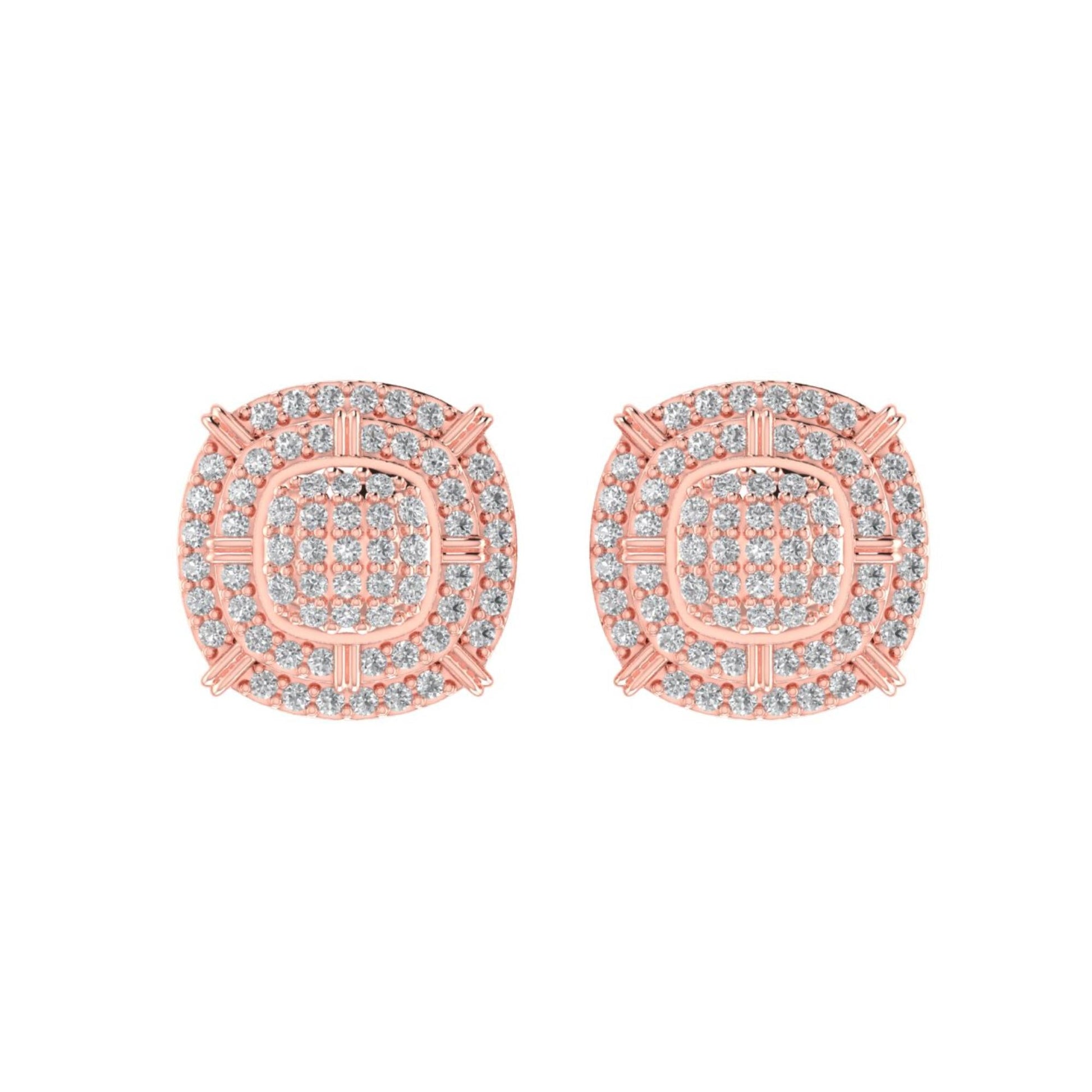 Sterling Silver Round Diamond Double Halo Designer Stud Earring RP+PP 3/8 Cttw