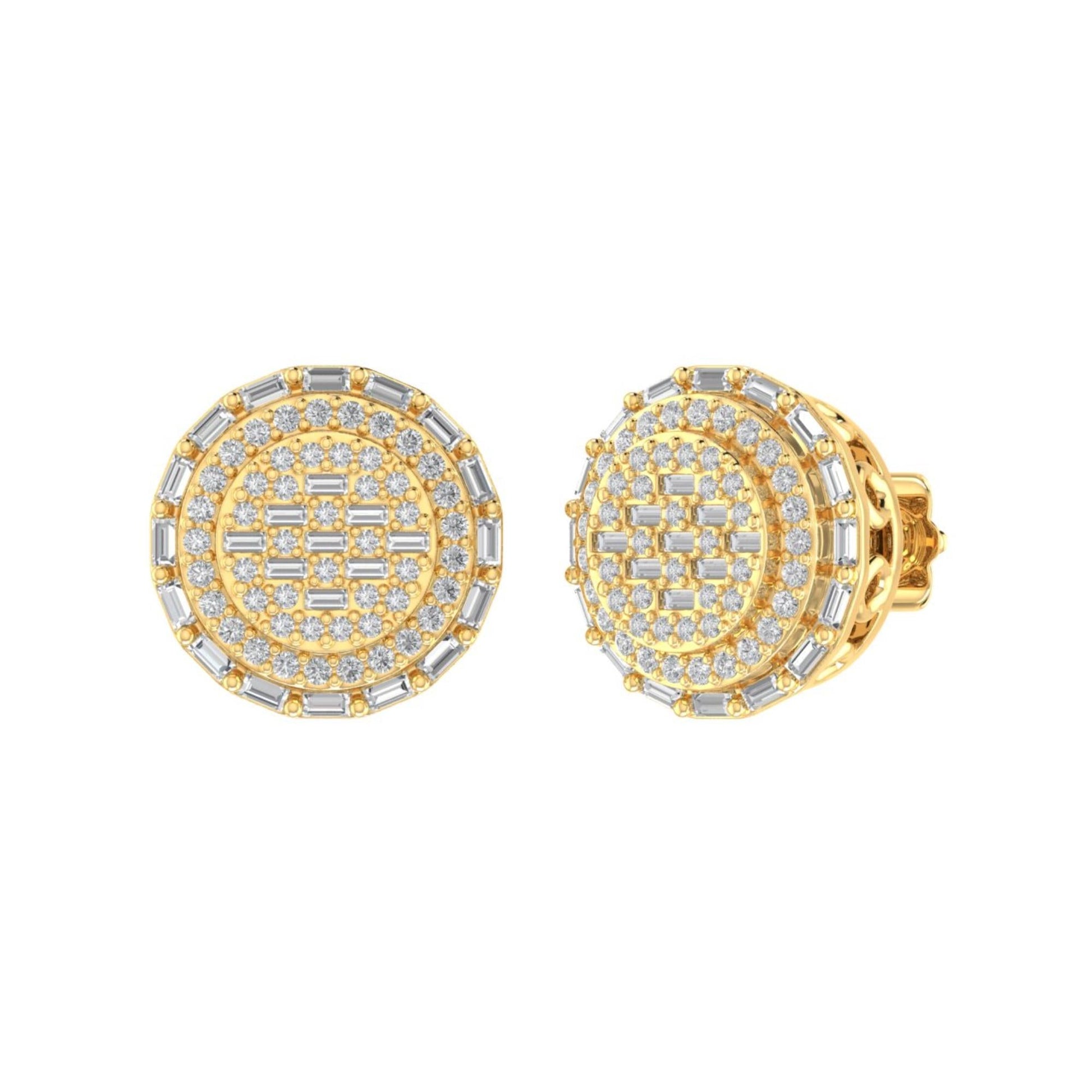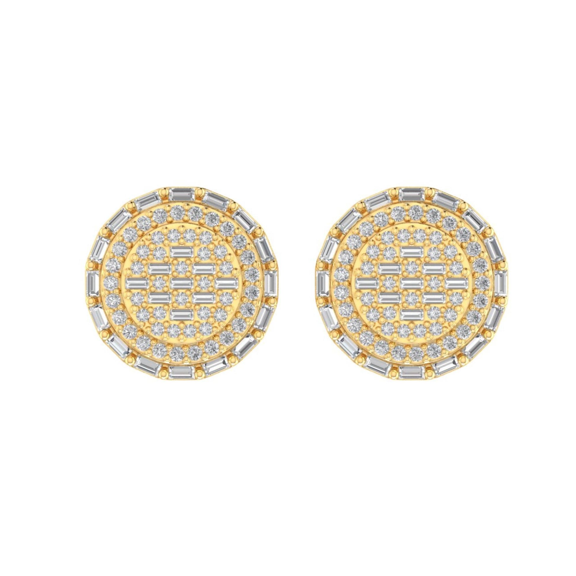 Sterling Silver Round Baguette Diamond Circle Designer Stud Earring RP+GP 5/8 Cttw