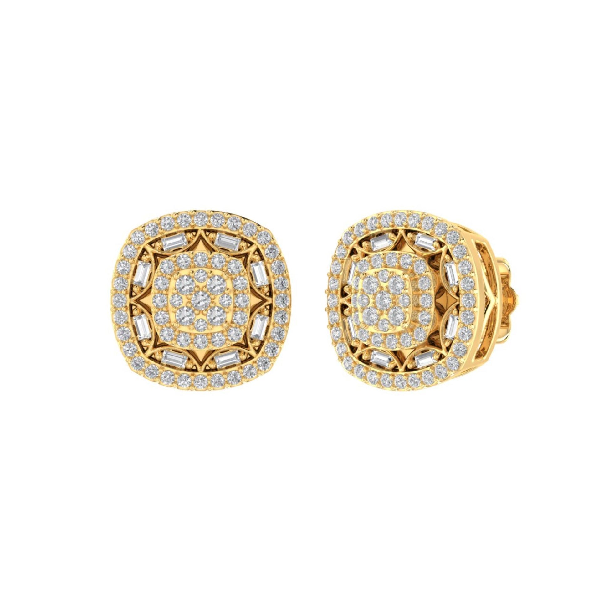 Sterling Silver Round Baguette Diamond Square Flower Designer Stud Earring RP+GP 1/2 Cttw