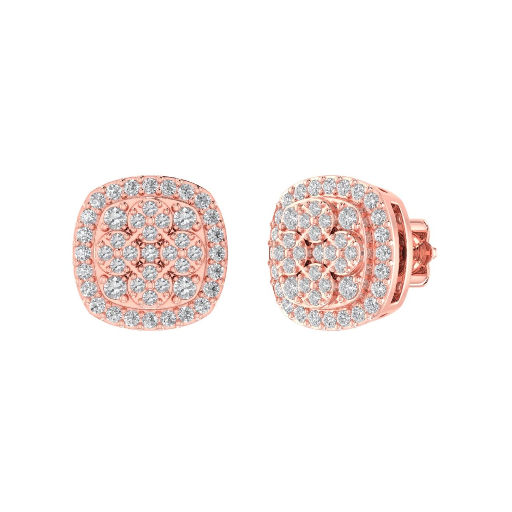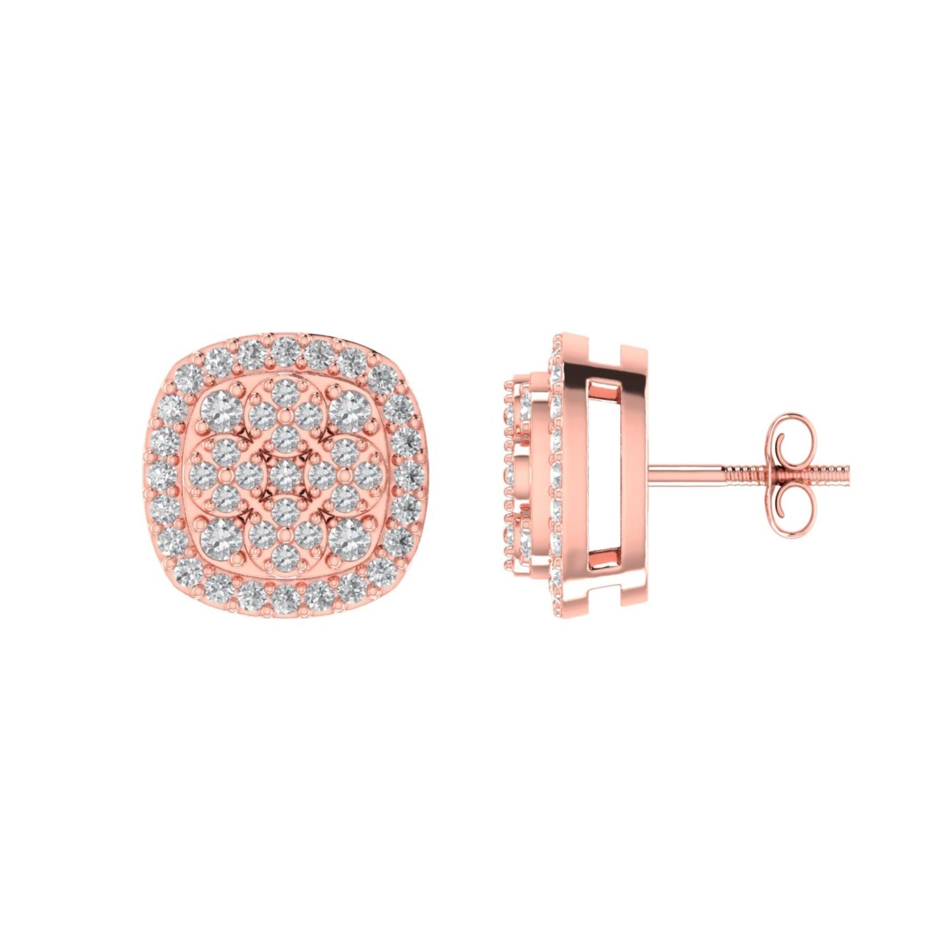 Sterling Silver Round Diamond Cushion Designer Stud Earring RP+PP 3/8 Cttw