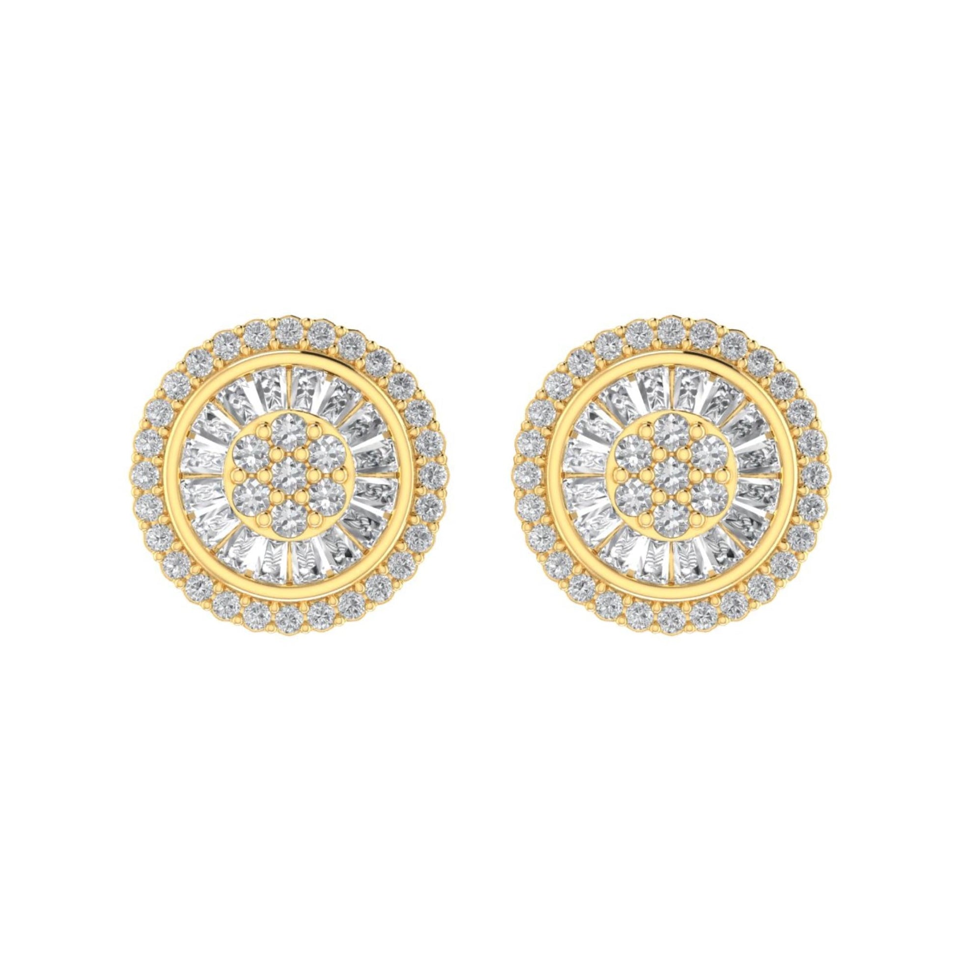 Sterling Silver Round Baguette Diamond Circle Shape Designer Stud Earring RP+GP 1/2 Cttw