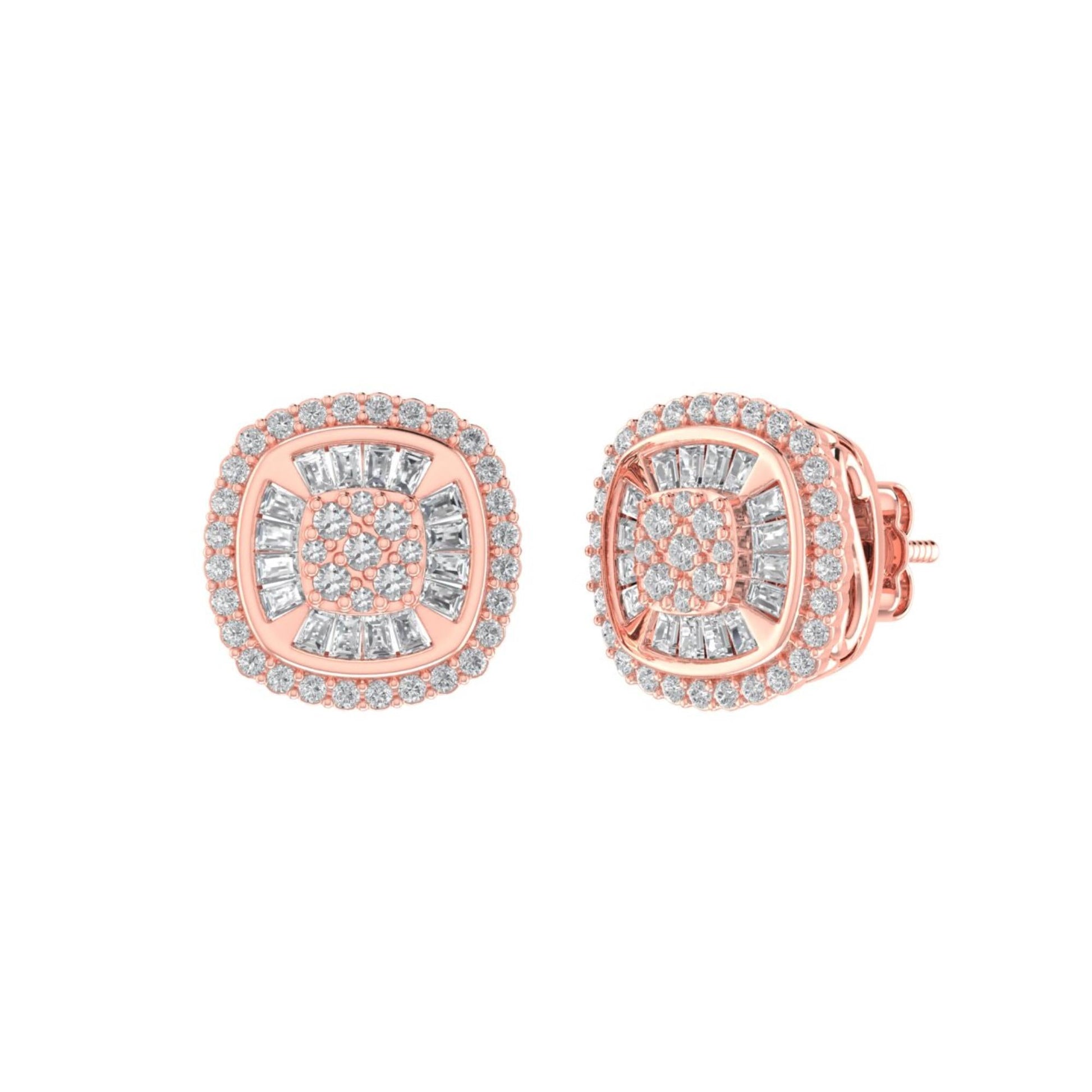 Sterling Silver Round Baguette Diamond Square Shape Designer Stud Earring RP+PP 3/8 Cttw