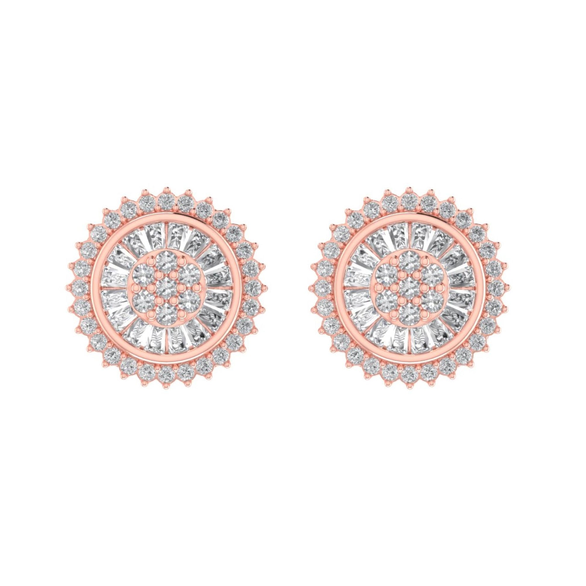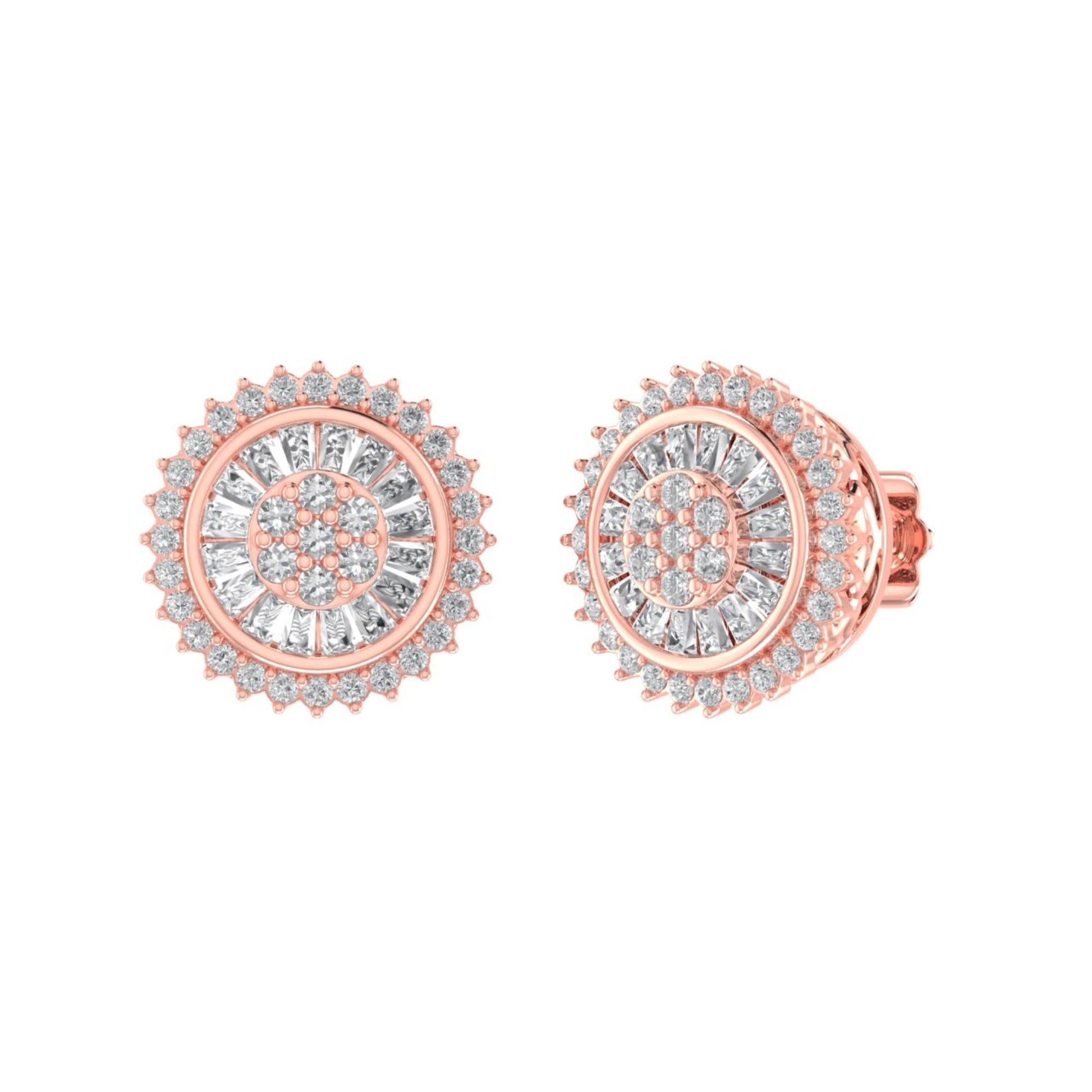 Sterling Silver Round Baguette Diamond Flower Designer Stud Earring RP+PP 1/2 Cttw
