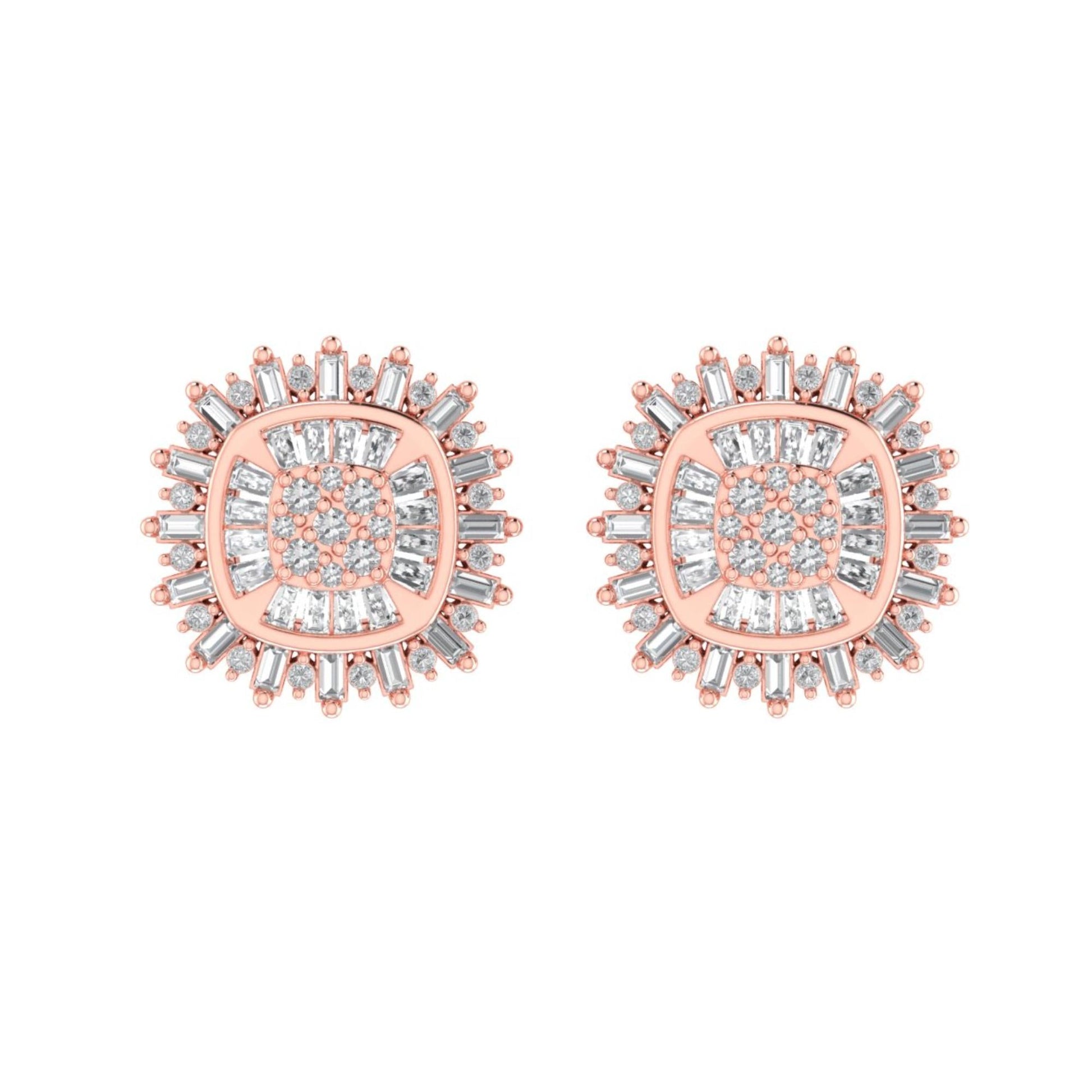 Sterling Silver Round Baguette Diamond Square Shape Designer Stud Earring RP+PP 1/2 Cttw