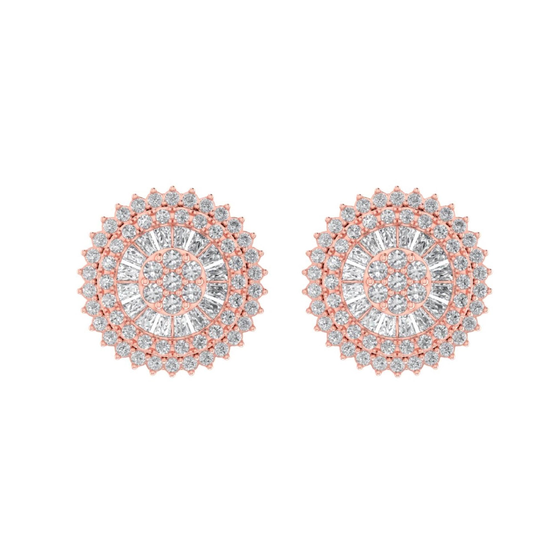 Sterling Silver Round Baguette Diamond Round Flower Designer Stud Earring RP+PP 3/4 Cttw