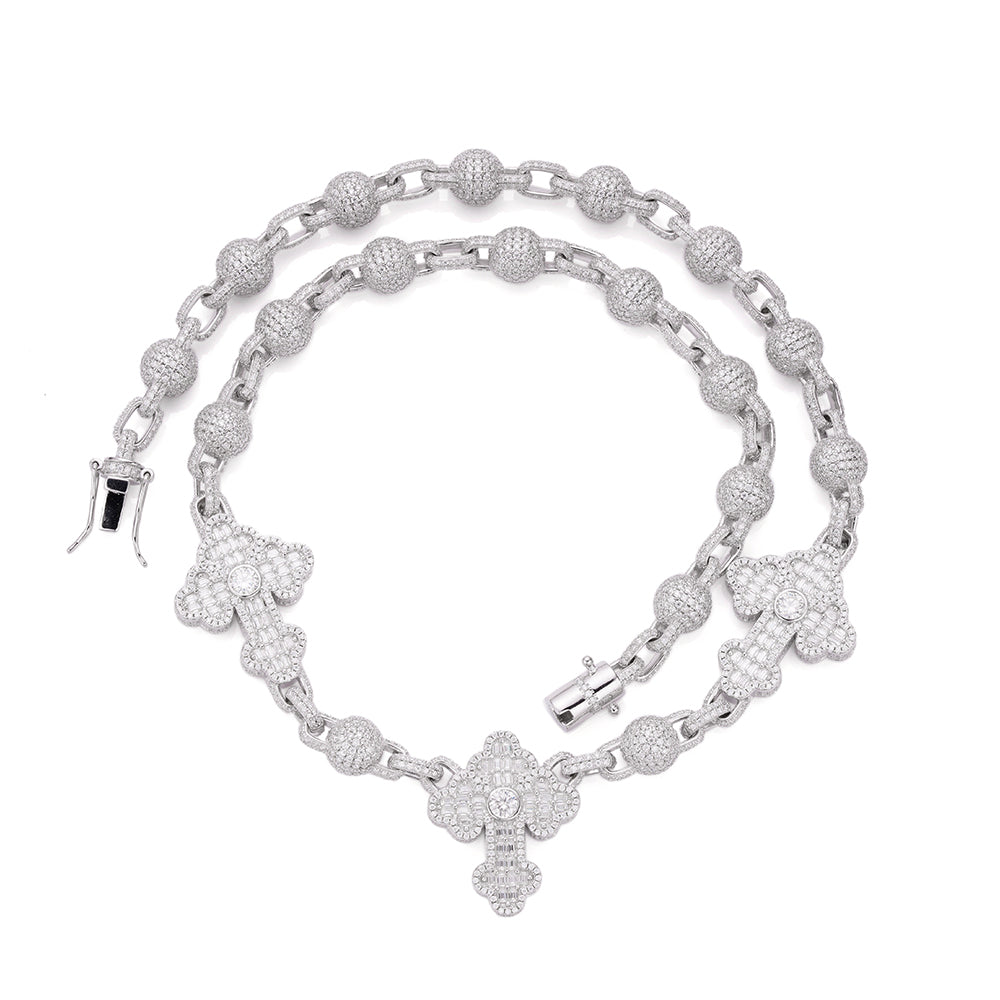 Sterling Silver Round Baguette Moissanite Cross Religious 22 Inch Necklace RP 38-1/3 Cttw