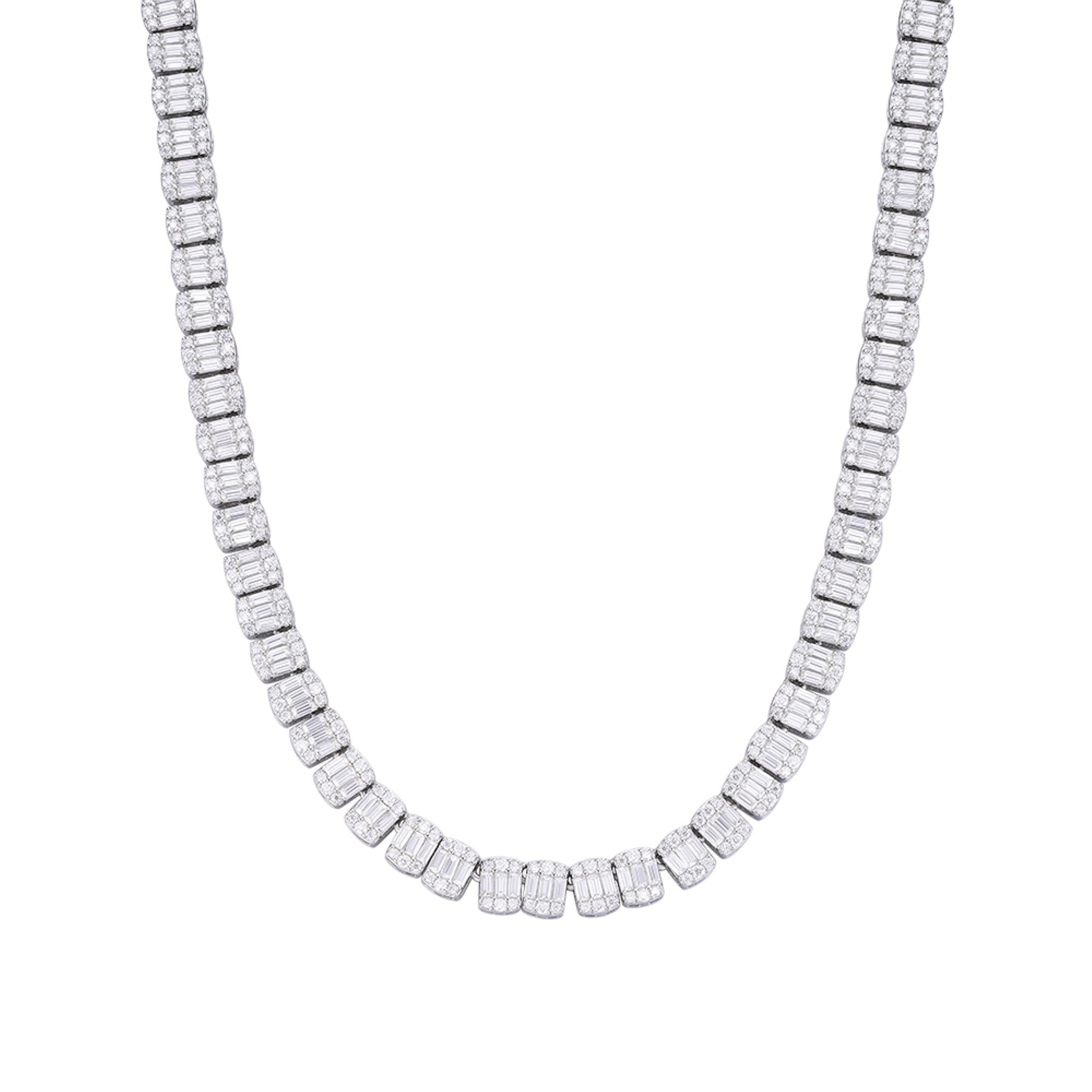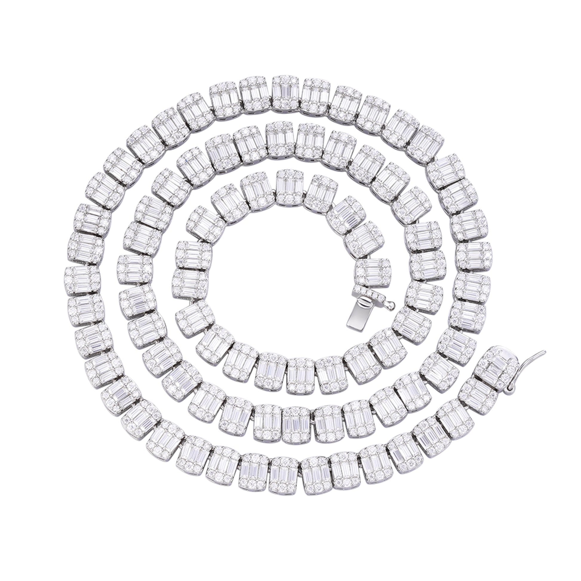Sterling Silver 7mm Round Baguette Moissanite 20 Inch Designer Necklace RP 23-1/2 Cttw