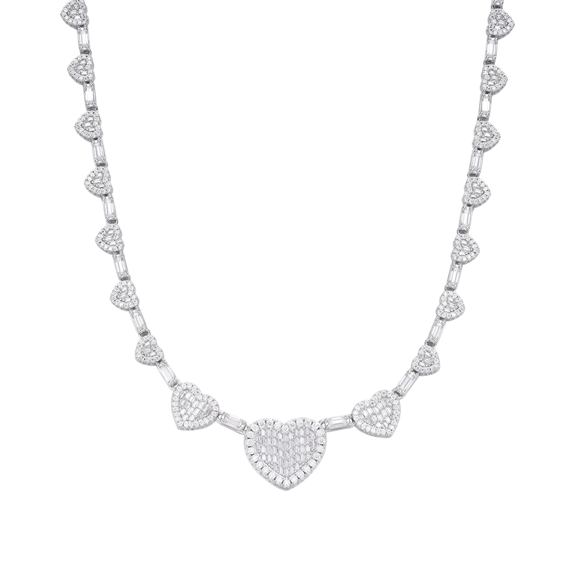 Sterling Silver Round Baguette Moissanite Heart Designer 18 Inch Necklace RP 14-5/8 Cttw