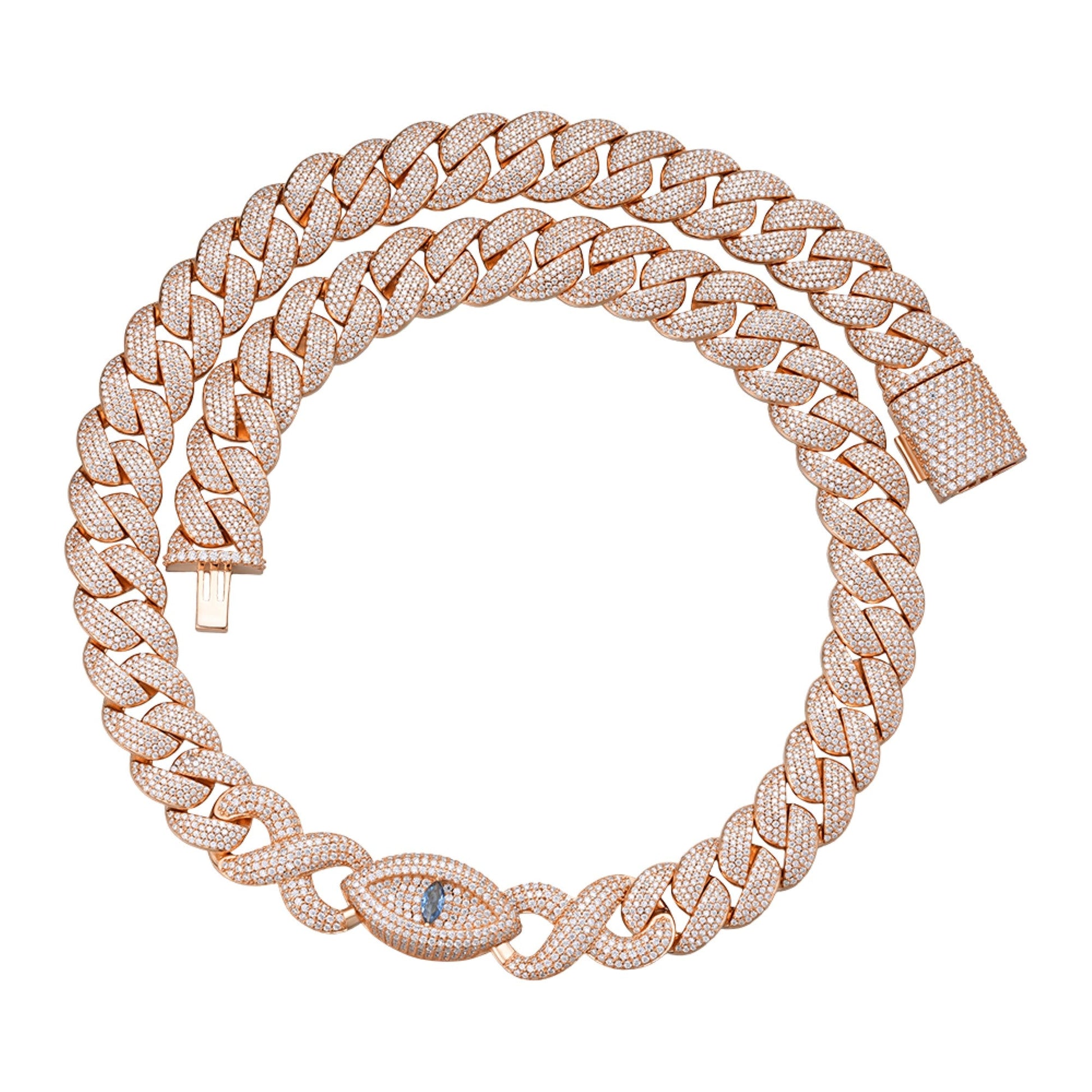 Sterling Silver Round Moissanite 15mm Inifinity Cuban With Evil Eye Designer 22 Inch Mens Necklace PP 27-1/8 Cttw