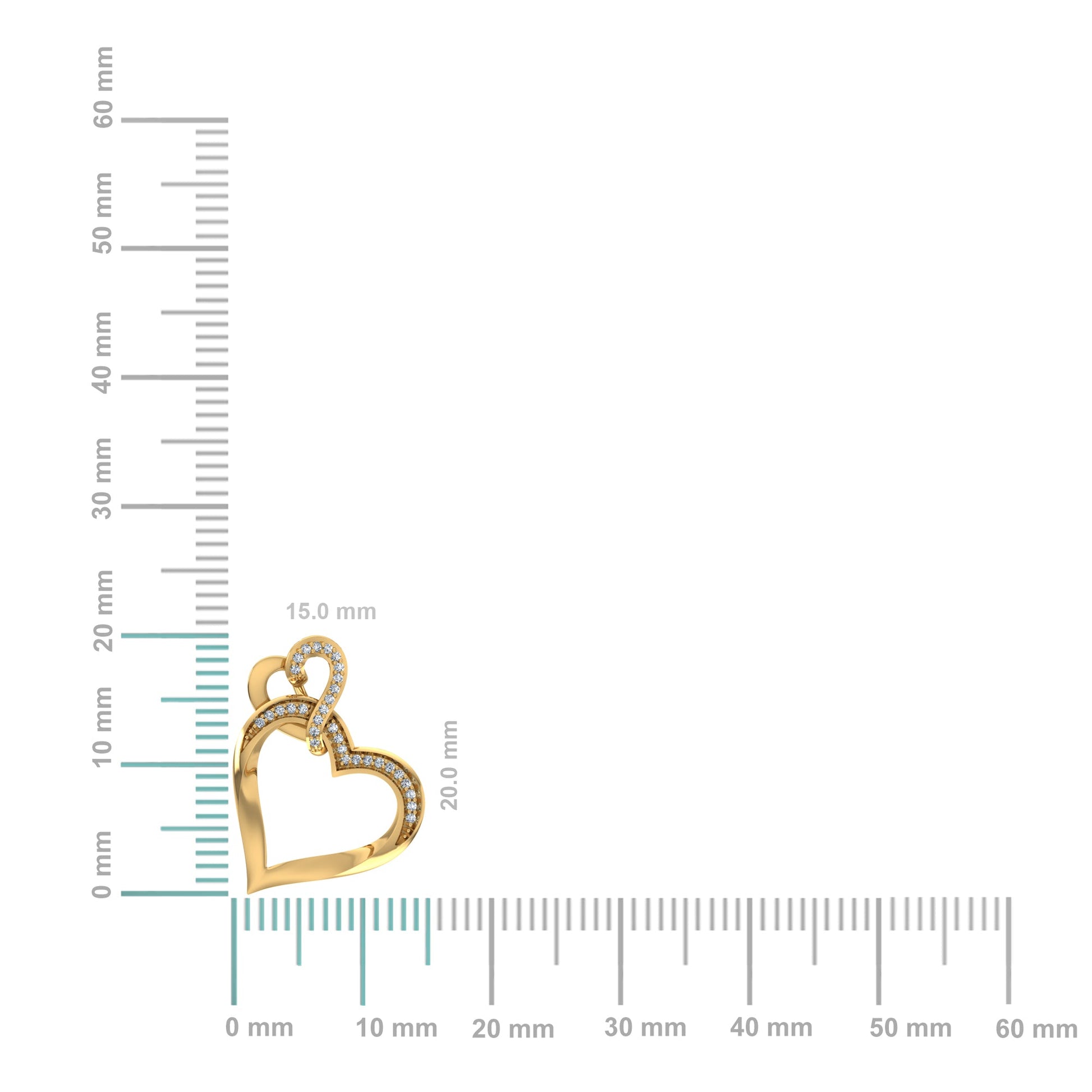 10K Yellow Gold Round Diamond Womens Double Heart Pendant 1/20 Cttw