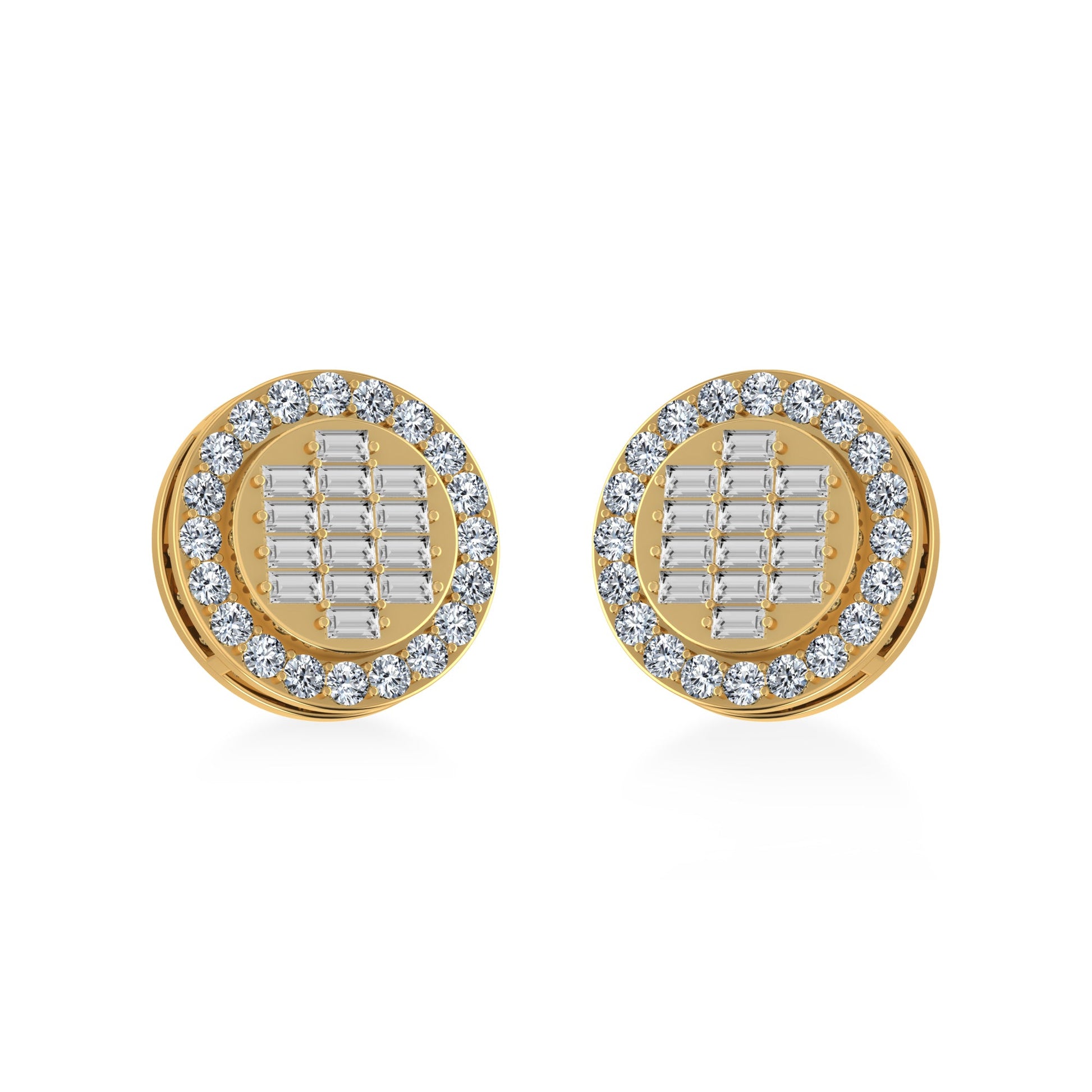 10K Yellow Gold Round Baguette Diamond Cluster Stud Earring 5/8 Cttw
