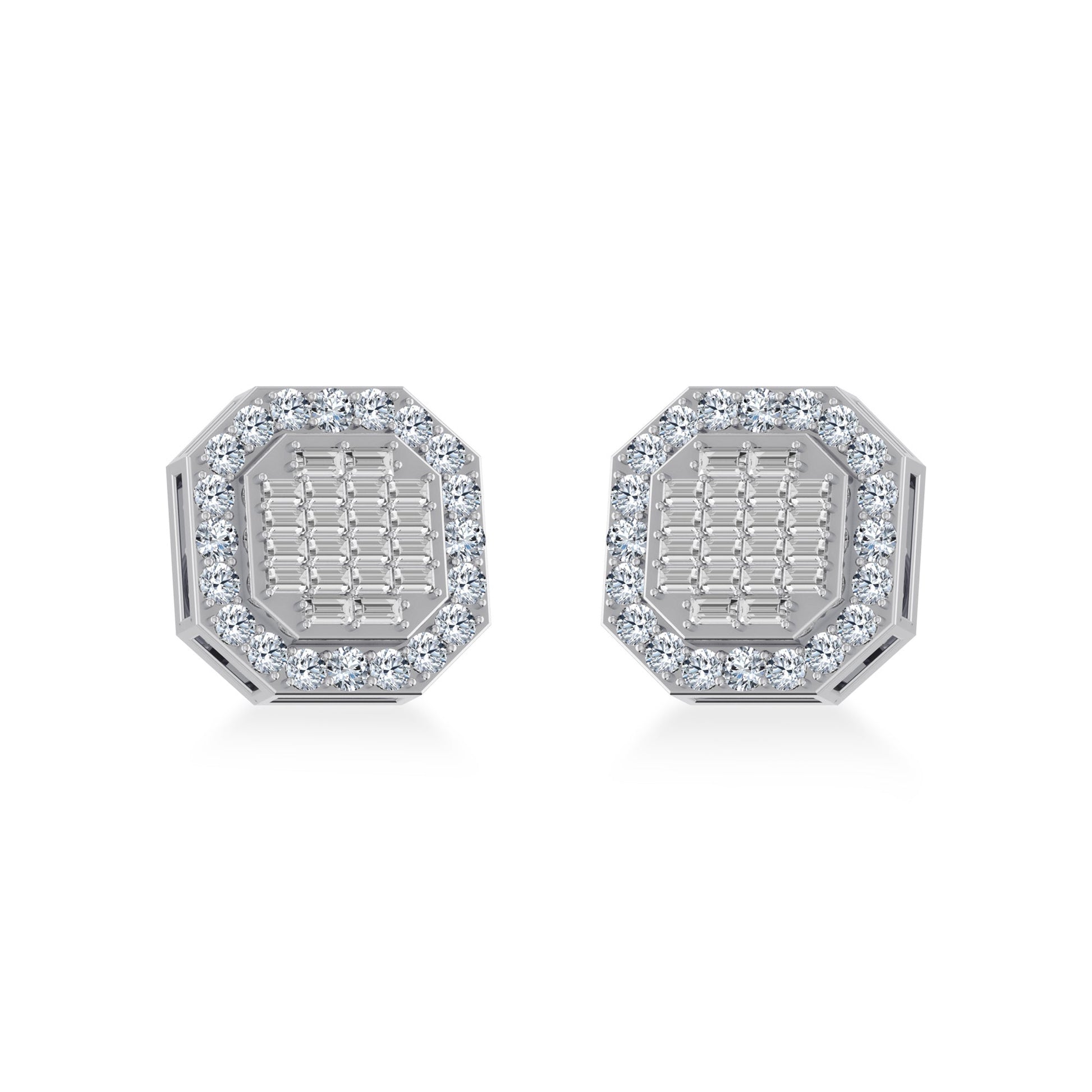 10K White Gold Diamond Designer Stud Earring 7/8 Cttw