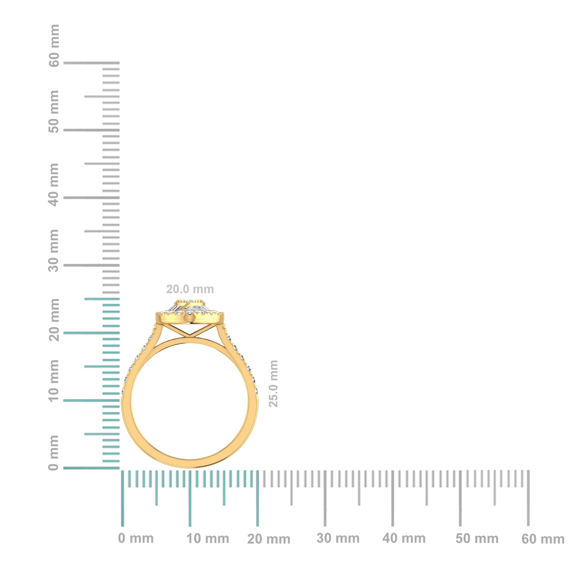 14K Yellow Gold Round Baguette Diamond Womens Sz 7 Designer Ring 3/4 Cttw