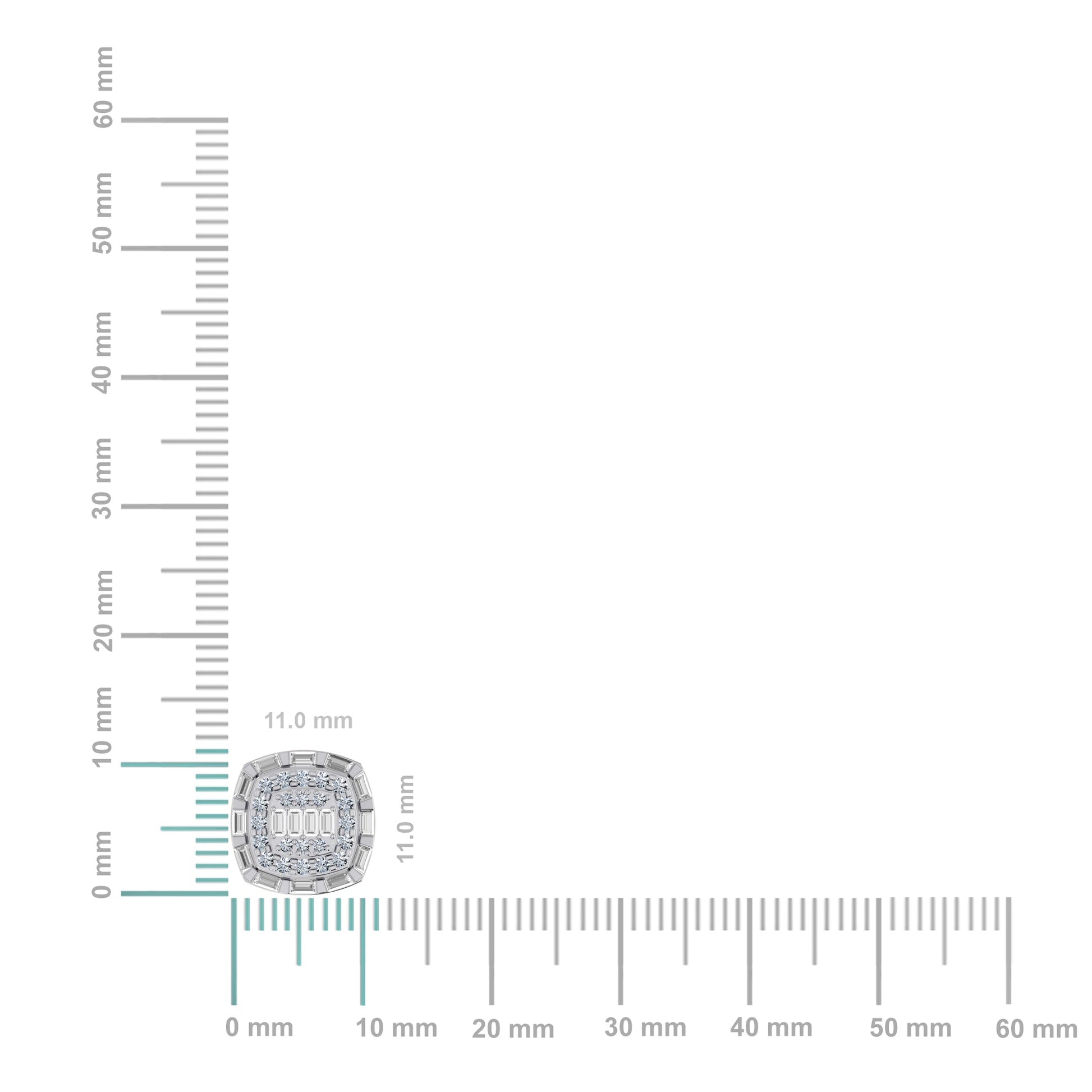 10K White Gold Round Baguette Diamond Square Designer Earring 3/4 Cttw