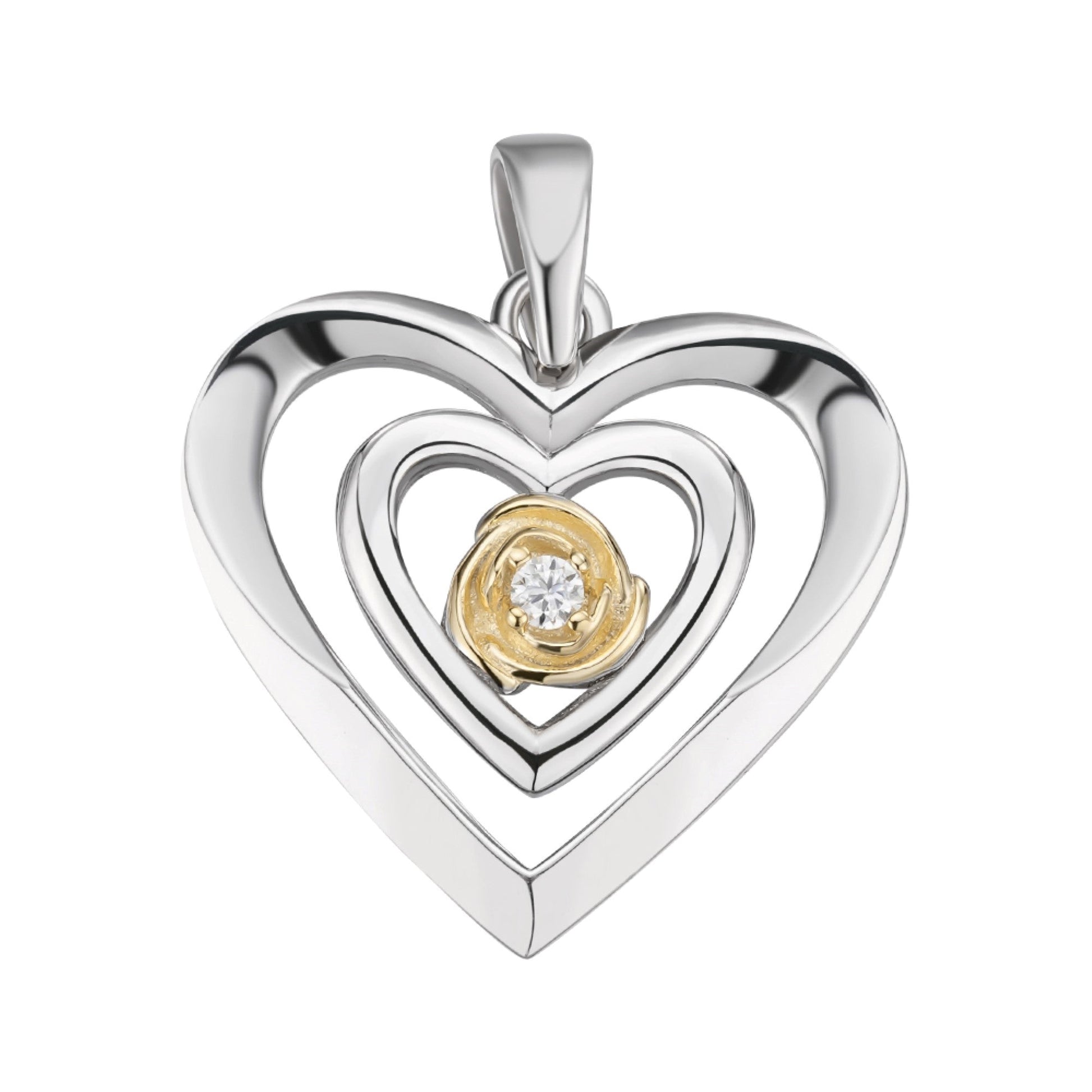 Sterling Silver Round Moissanite Solitaire Heart Designer Pendant RP+GP 1/10 Cttw