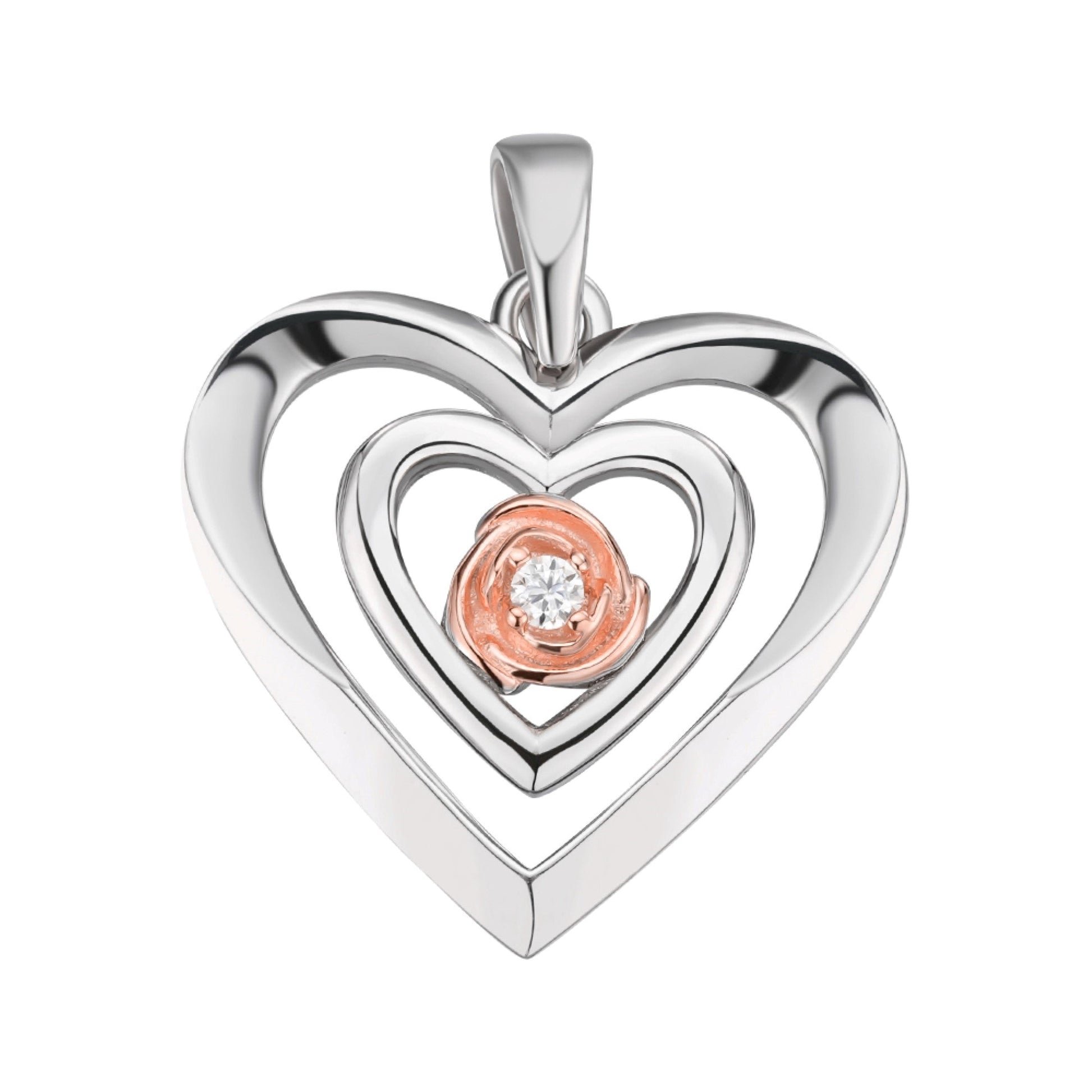 Sterling Silver Round Moissanite Solitaire Heart Designer Pendant RP+PP 1/10 Cttw