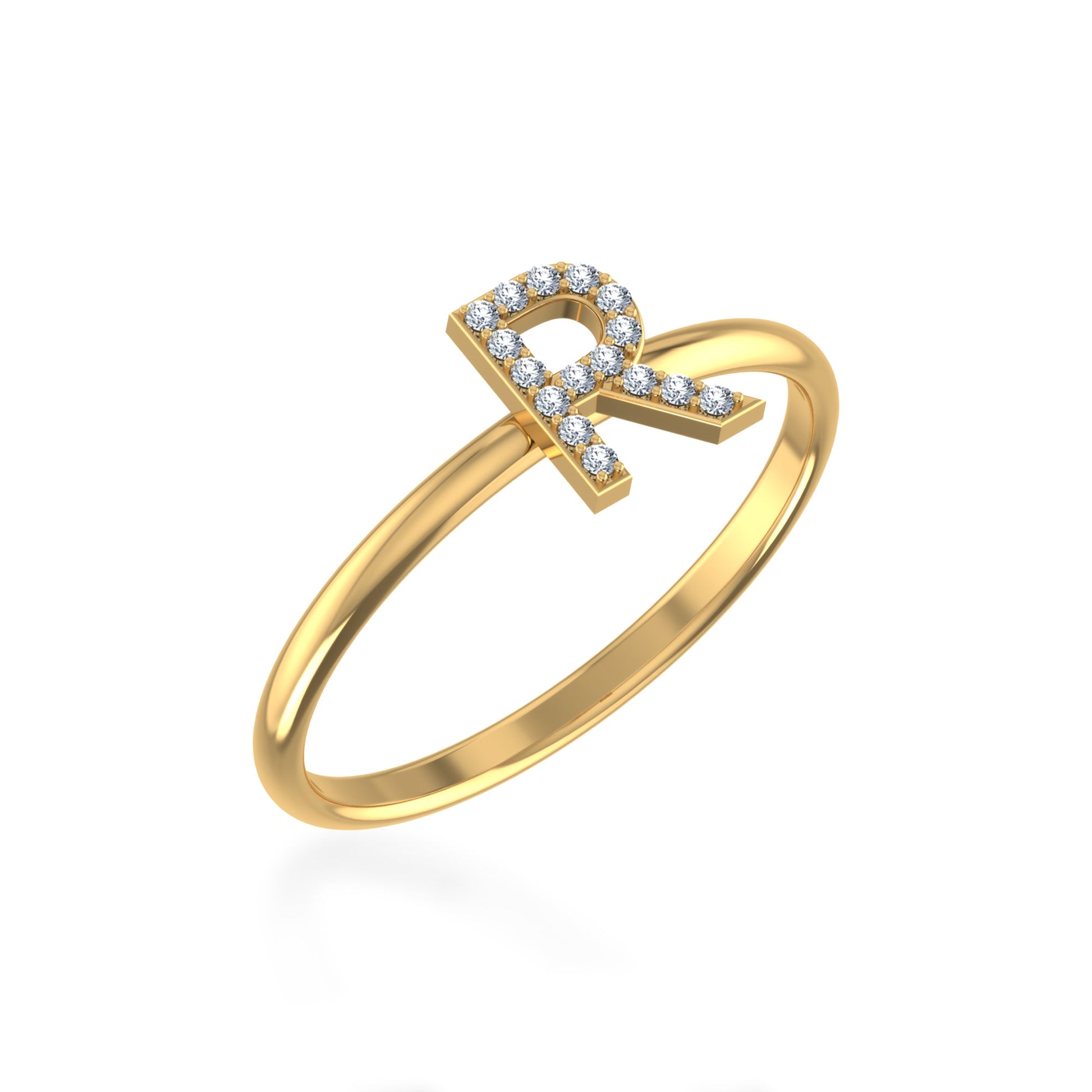10K Yellow Gold Womens Round Diamond R Initial Letter Ring 1/25 Cttw
