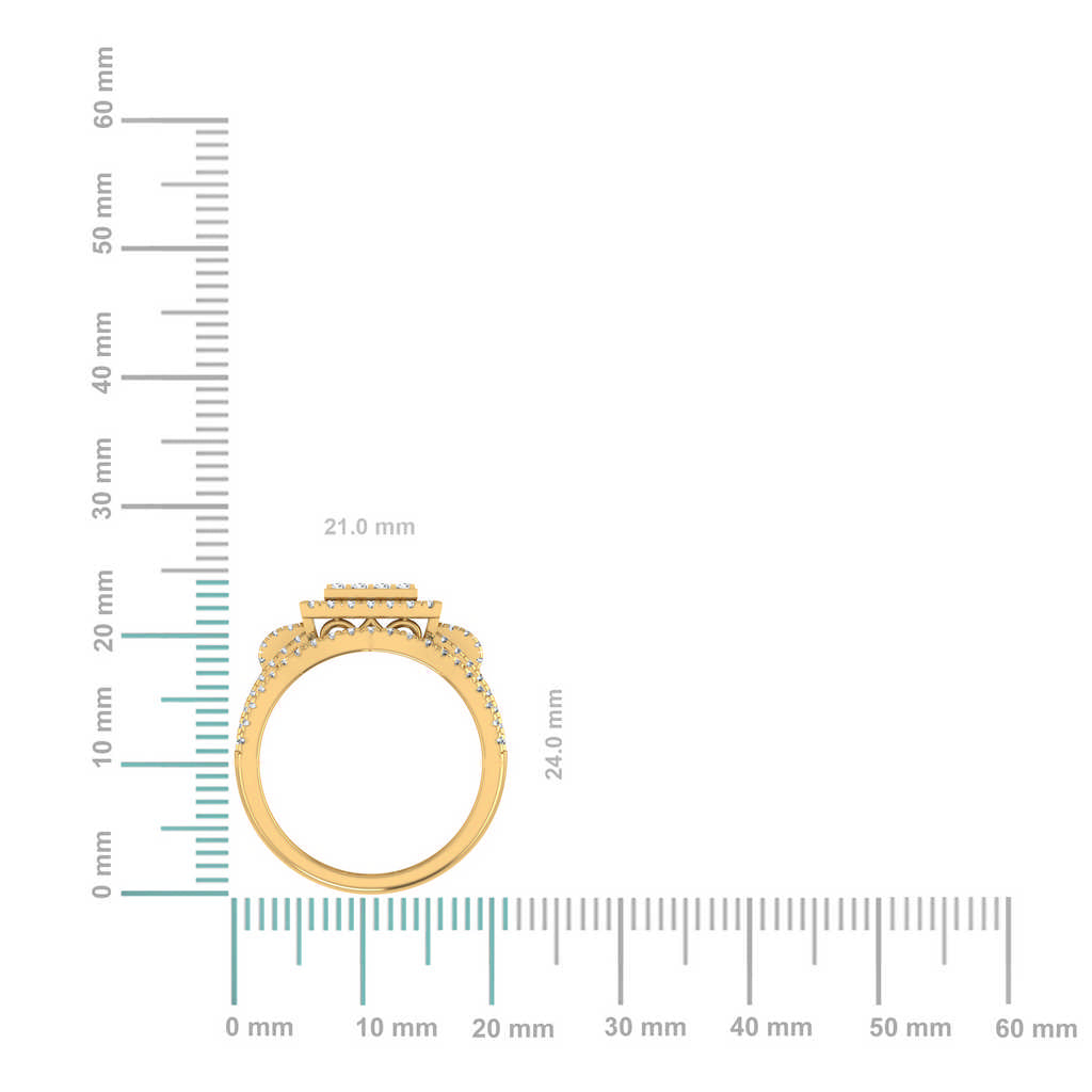 10K Yellow Gold Round Diamond Halo Big Bridal Cluster Ring 1-1/4 Cttw