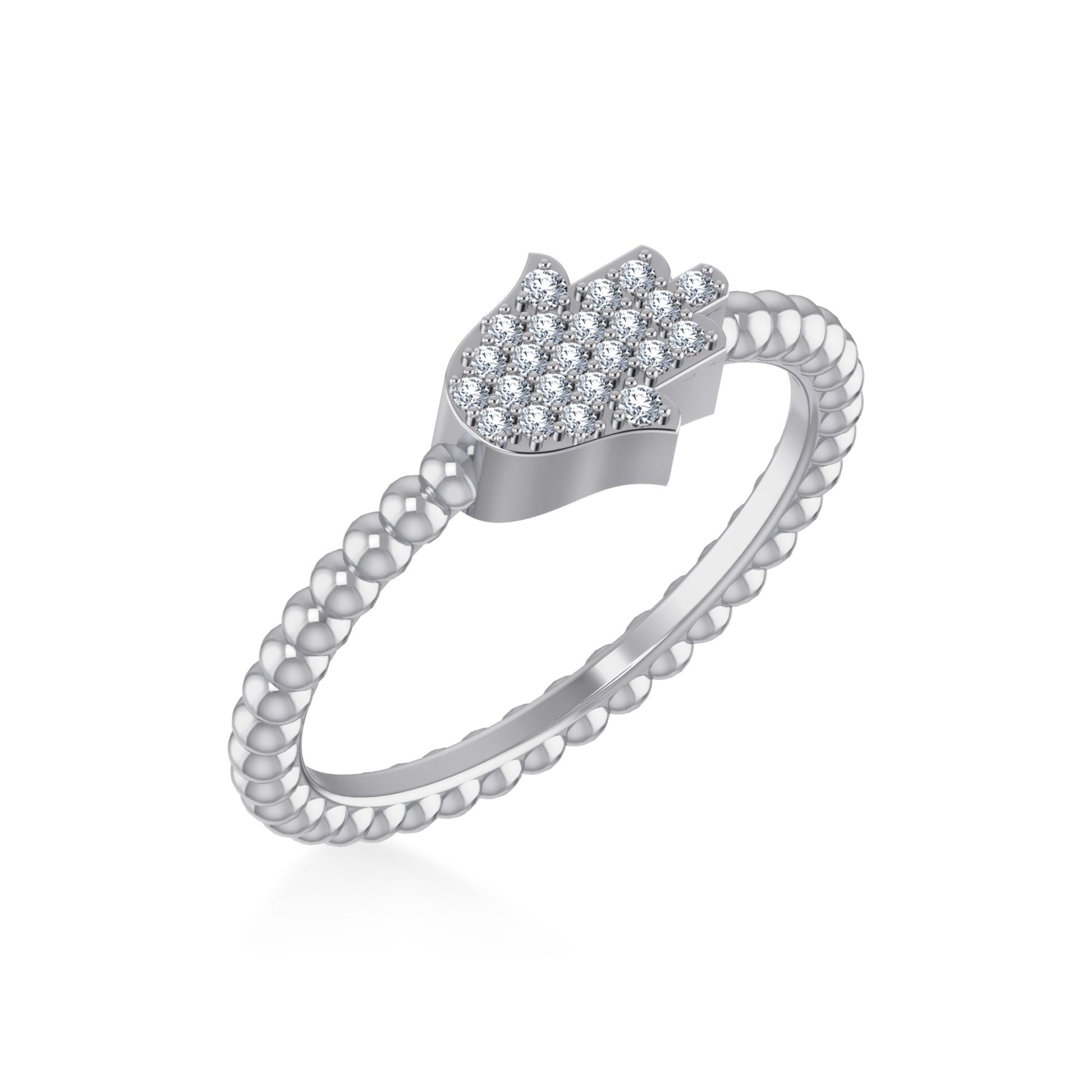 10K White Gold Round Diamond Hamza Hand Sz 7 Designer Ladies Ring 1/8 Cttw