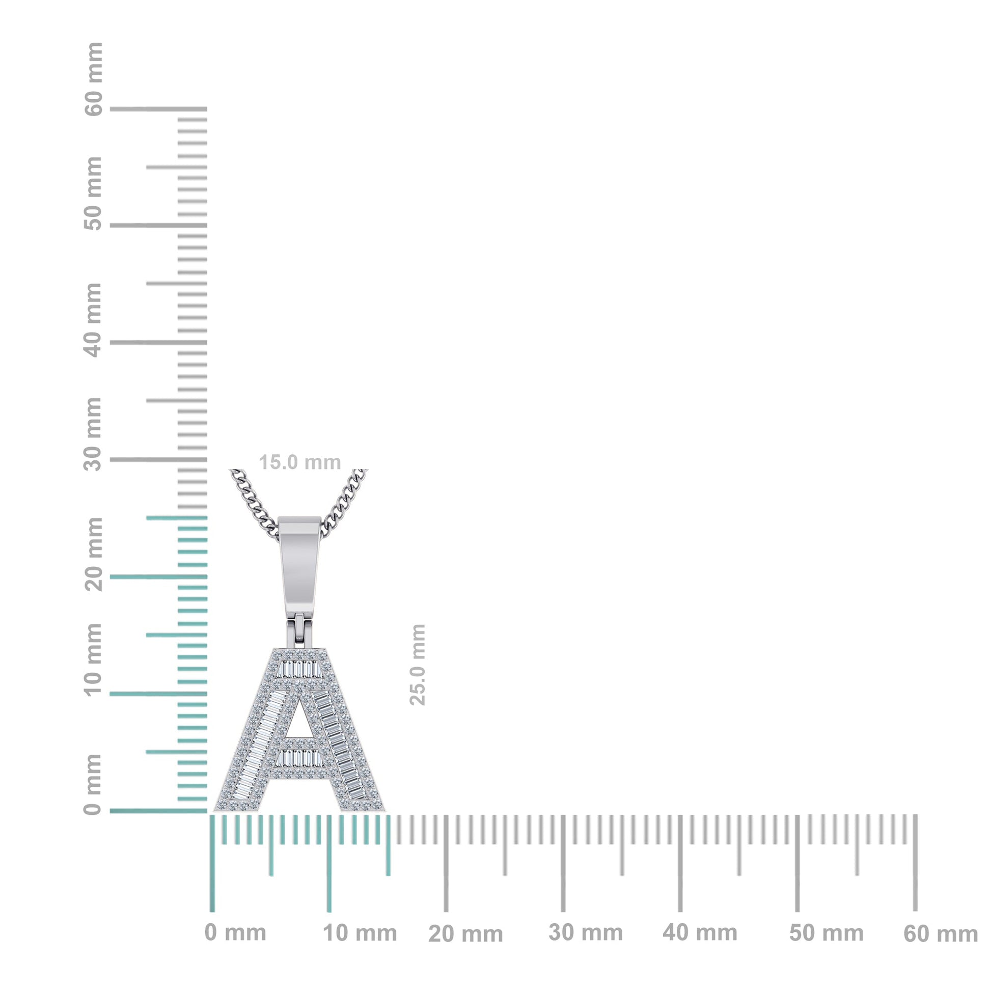 10K White Gold Baguette Initial A Pendant 3/8 Cttw