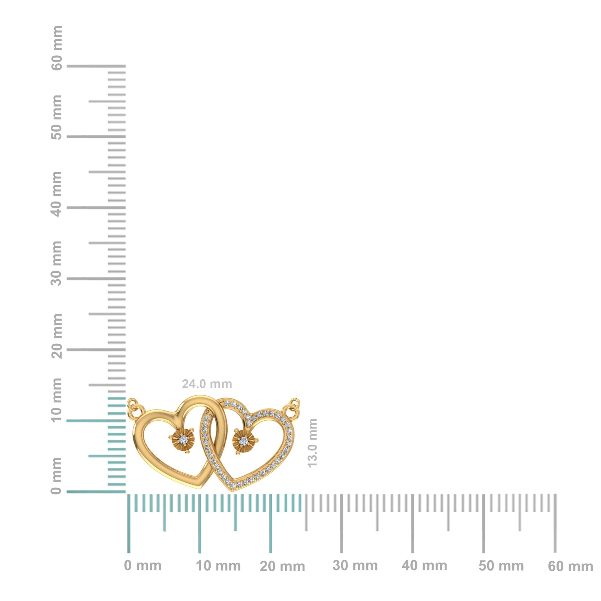 10K Yellow Gold Round Diamond Womens Double Heart Pendant 1/10 Cttw