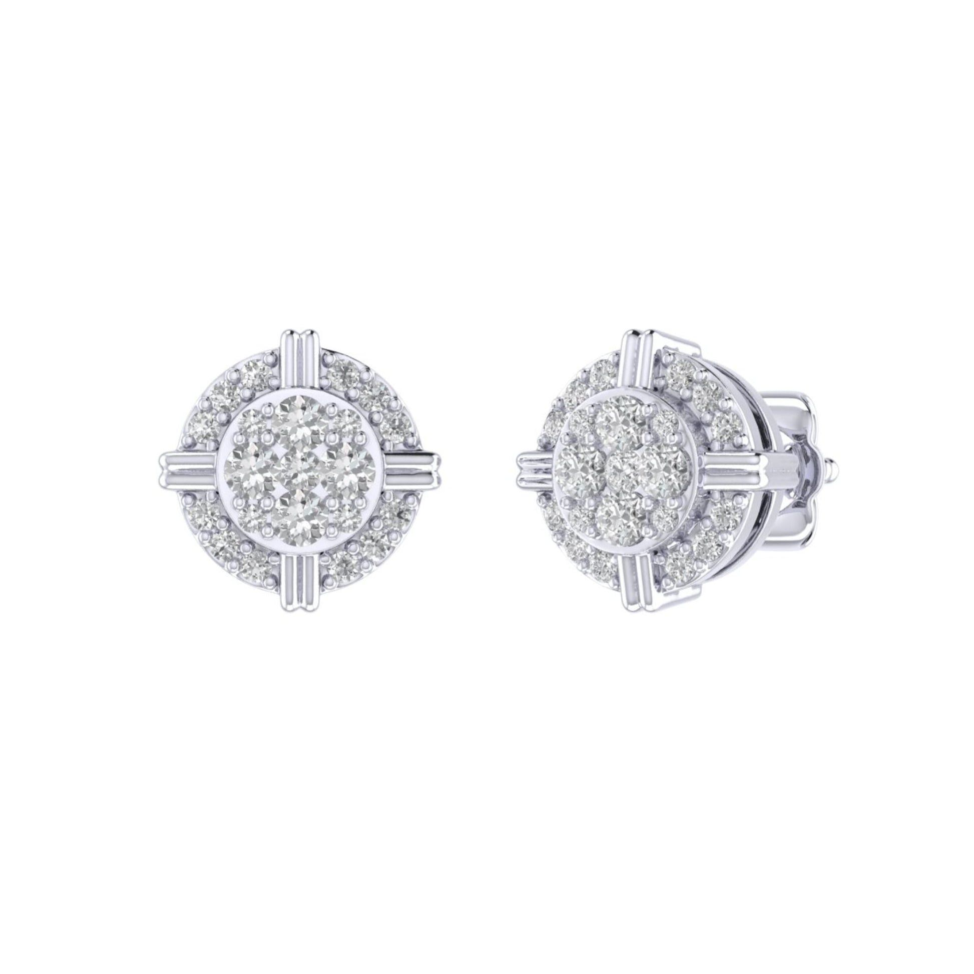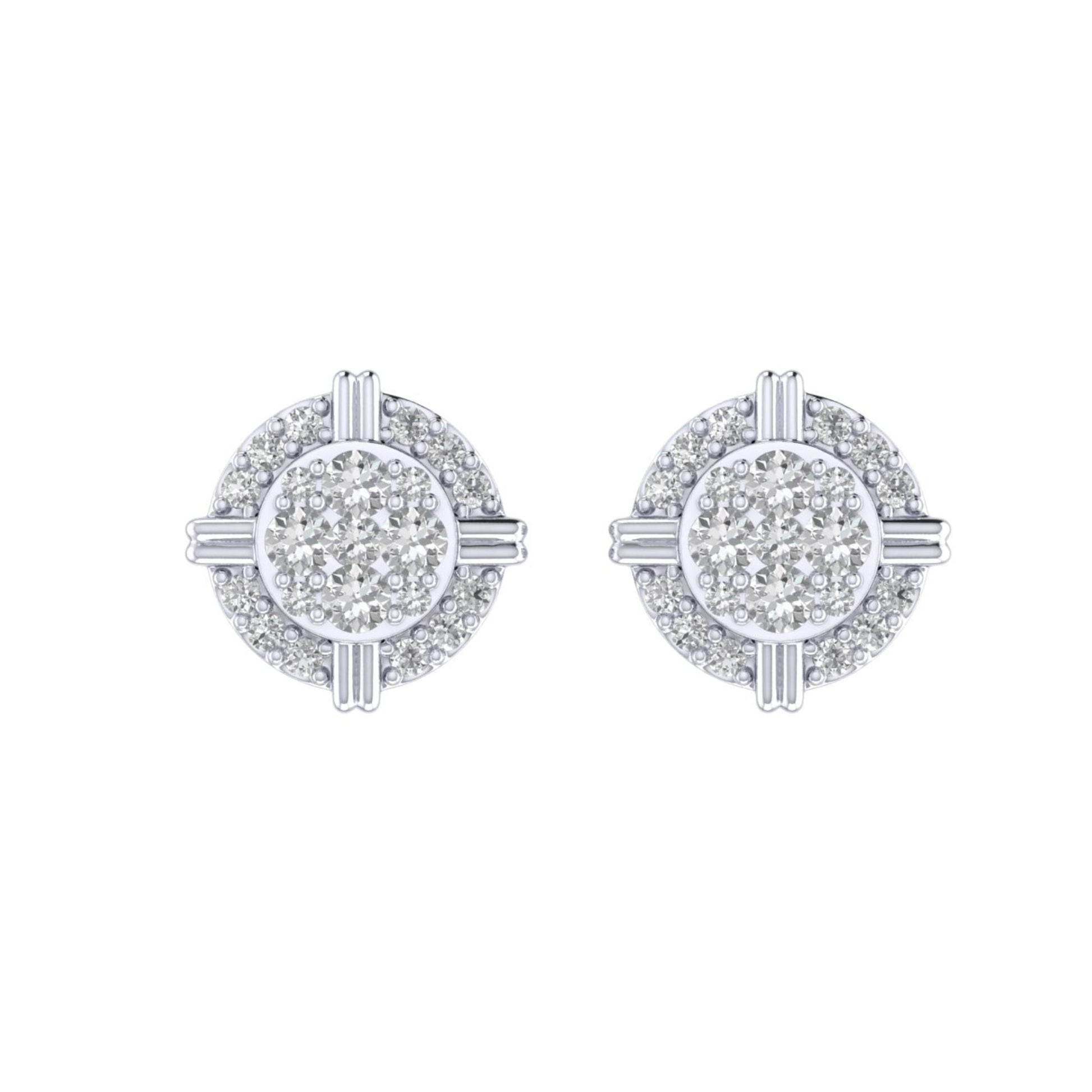 Sterling Silver Round Diamond Cushion Shape Designer Stud Earring RP 1/4 Cttw