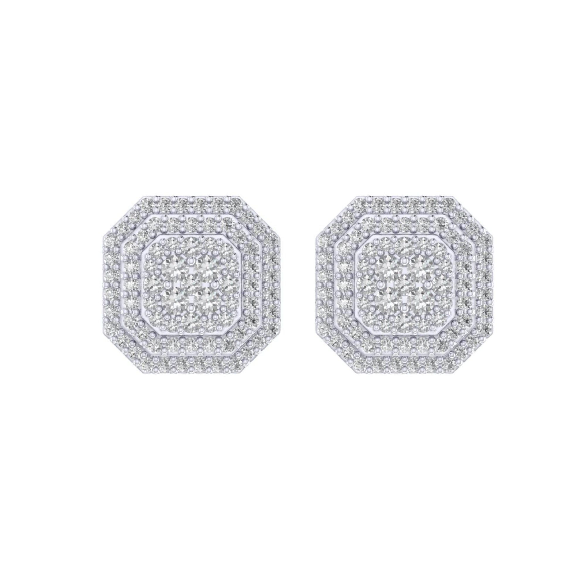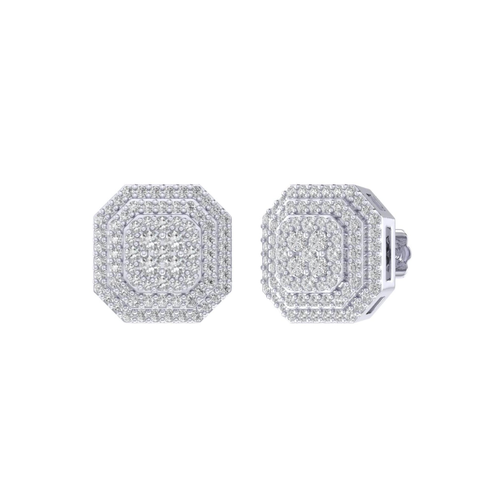 Sterling Silver Round Diamond Octagon Shape Designer Stud Earring RP 5/8 Cttw