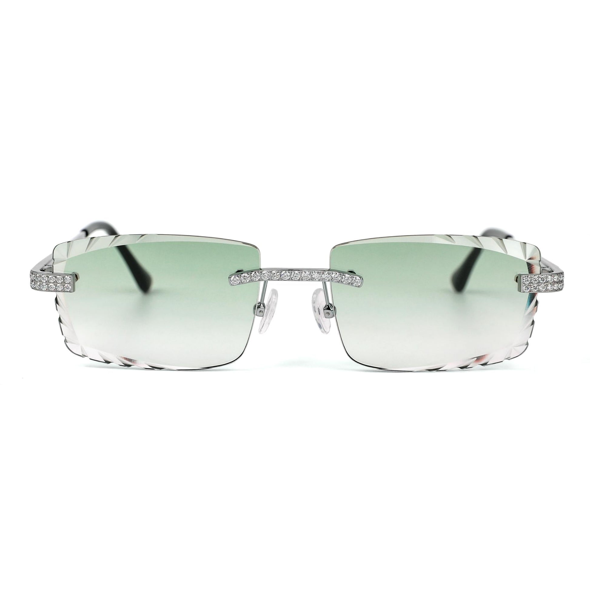 Sterling Silver Round Moissanite Cartier Square Shape Green Lens Wooden Glasses RP 2-1/3 Cttw