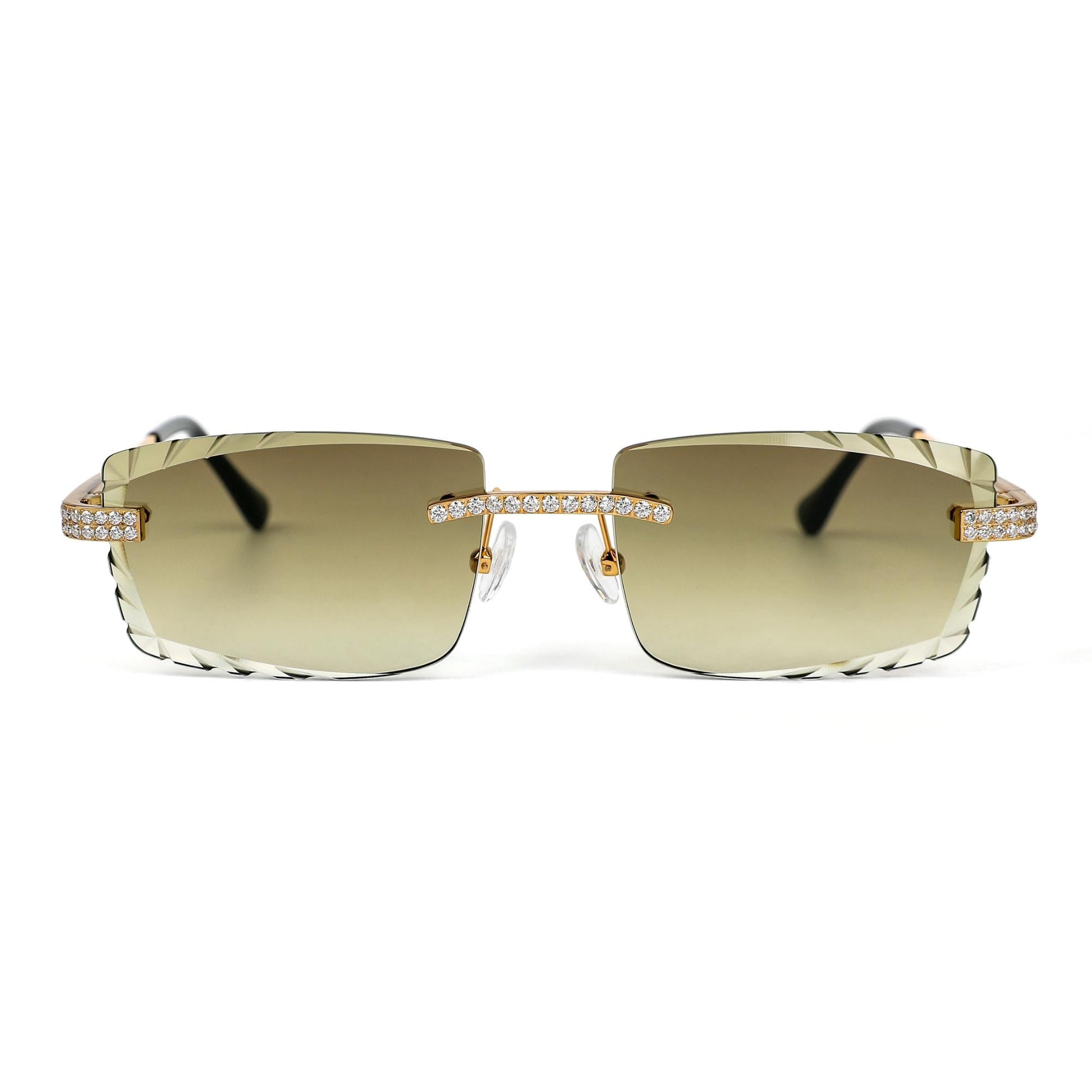 Sterling Silver Round Moissanite Cartier Square Shape Gradient Brown Lens Wooden Glasses GP 2-1/3 Cttw