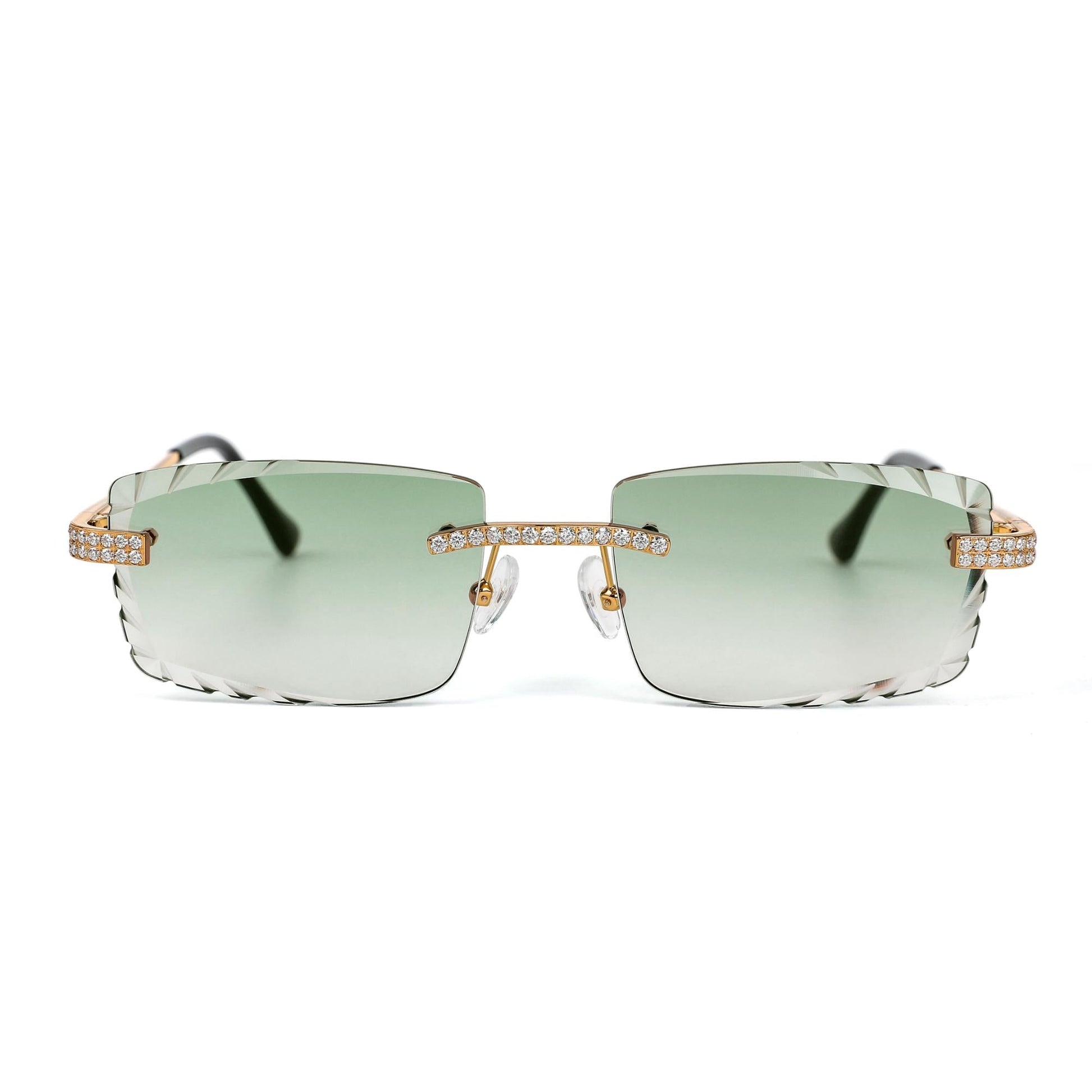 Sterling Silver Round Moissanite Cartier Square Shape Green Lens Wooden Glasses GP 2-1/3 Cttw