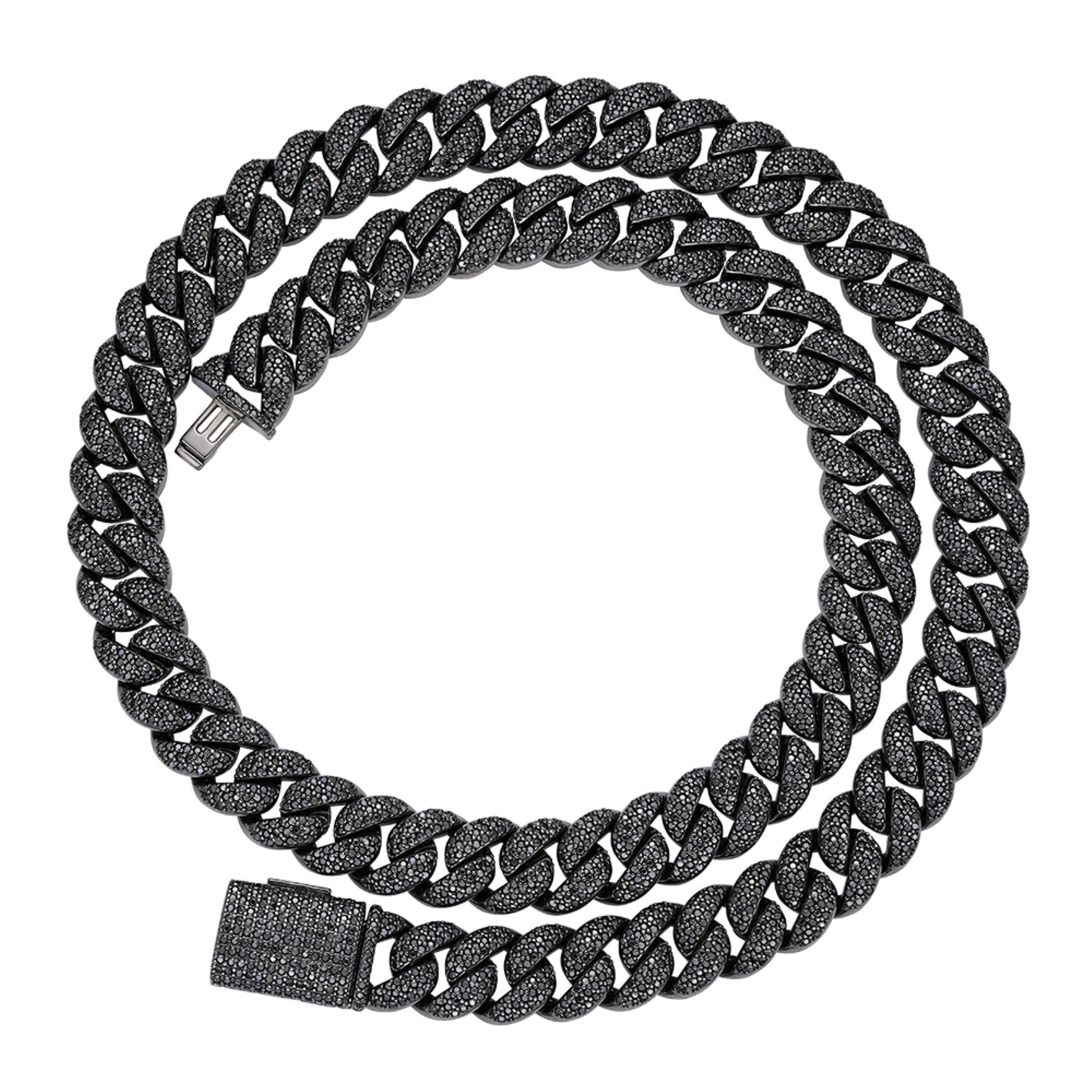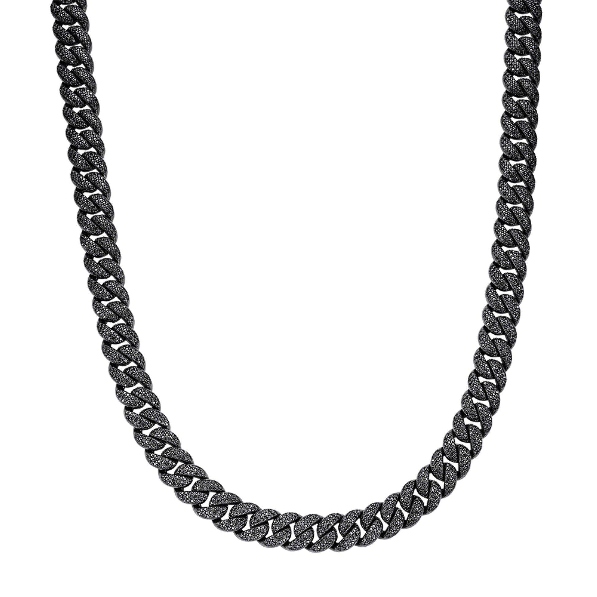 Sterling Silver 12mm Round Black Moissanite Miami Cuban Chain 22 Inch Mens Necklace BP+BP 19-5/8 Cttw