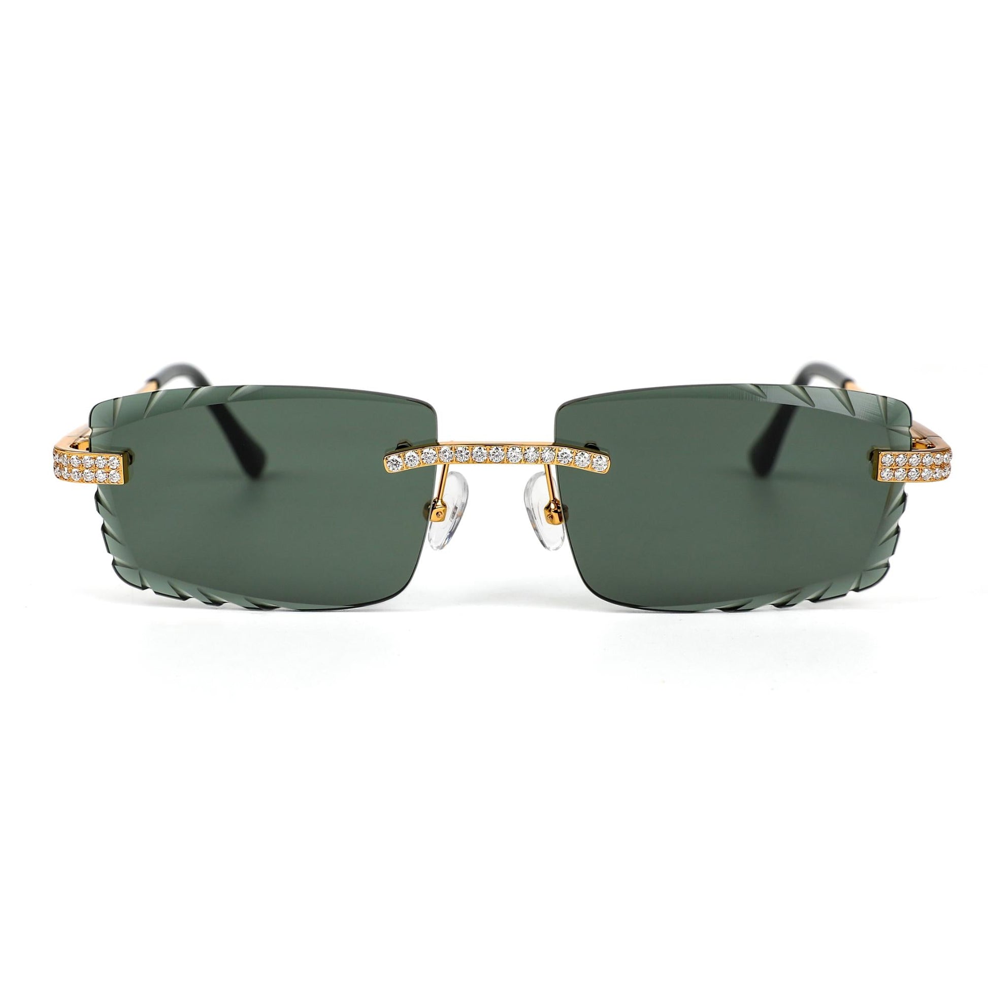 Sterling Silver Round Moissanite Cartier Square Shape Black Lens Wooden Glasses GP