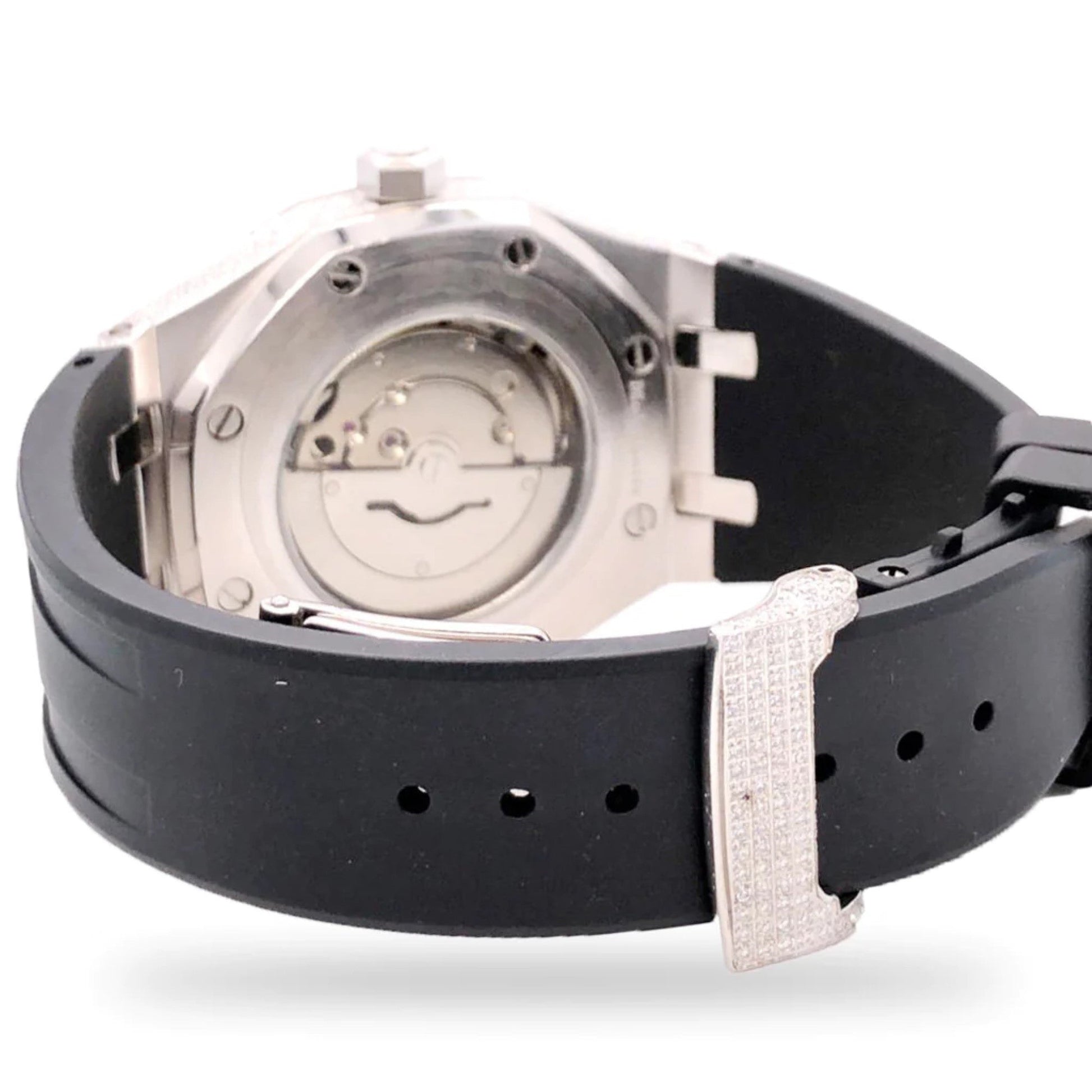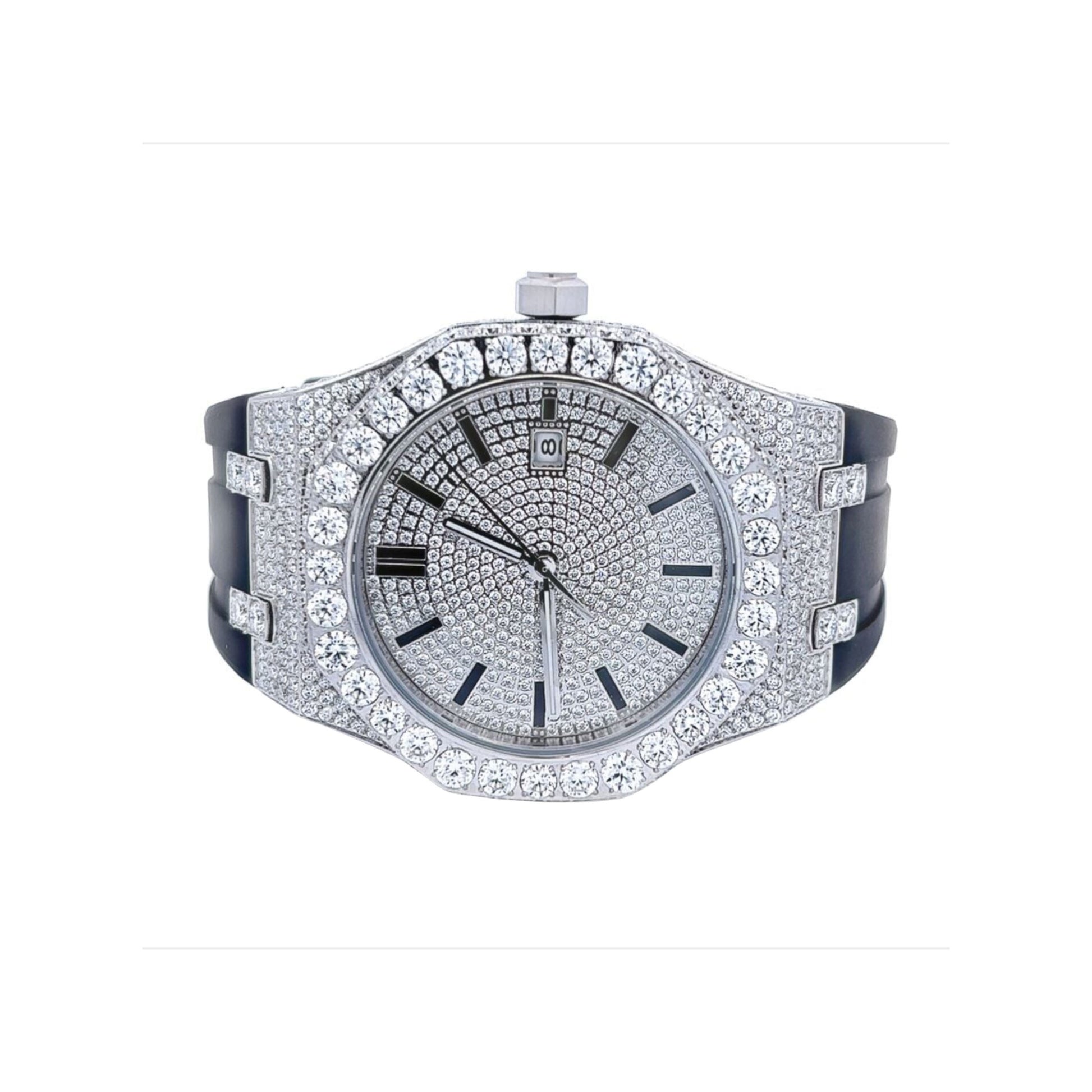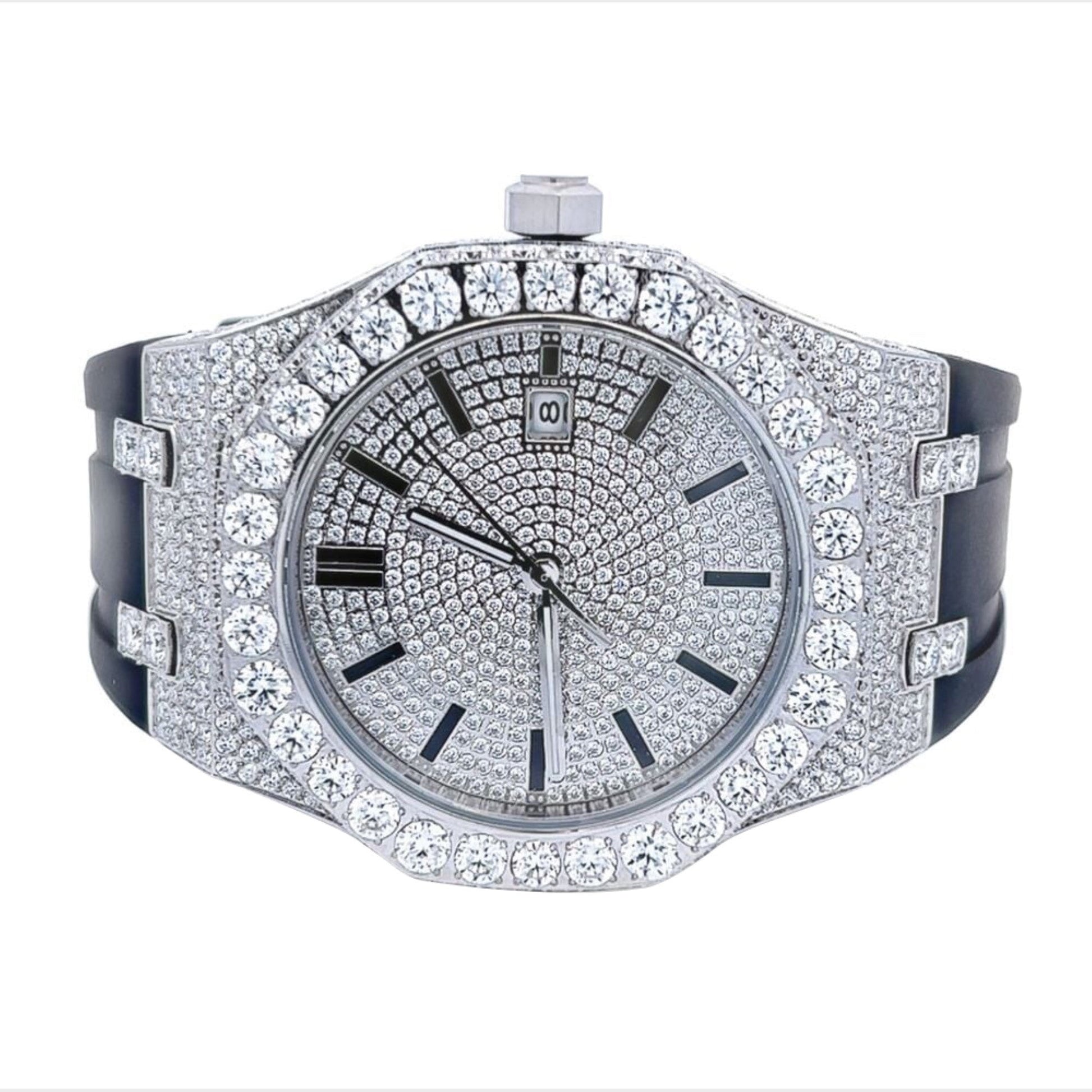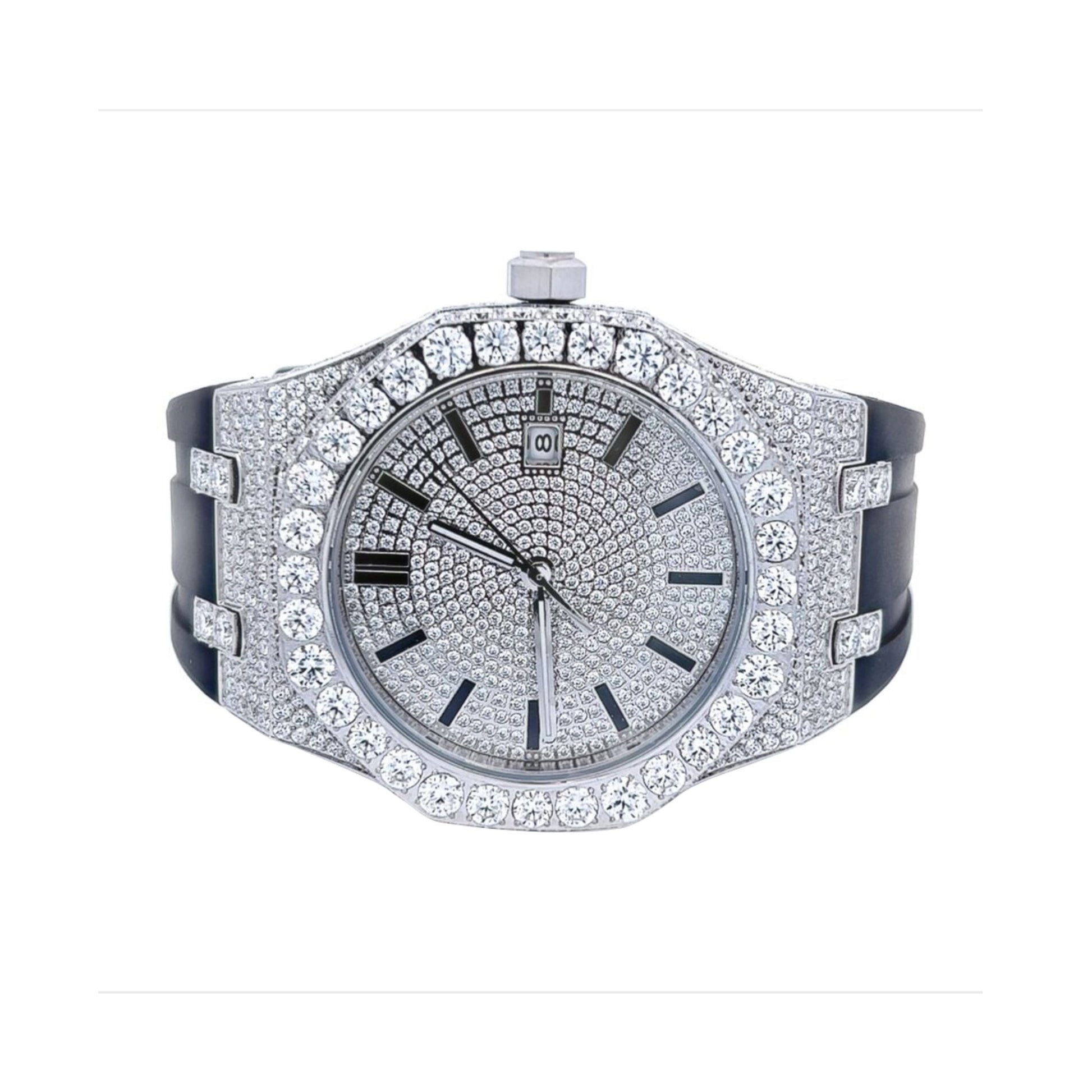 Moissanite Stainless Steel Watch Black Rubber Band 15-3/4 Cttw