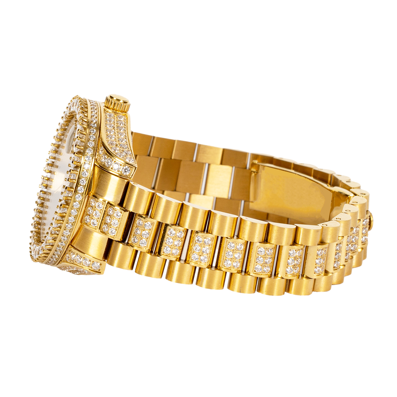 Moissanite Stainless Steel Mens Yellow Steel Band Watch