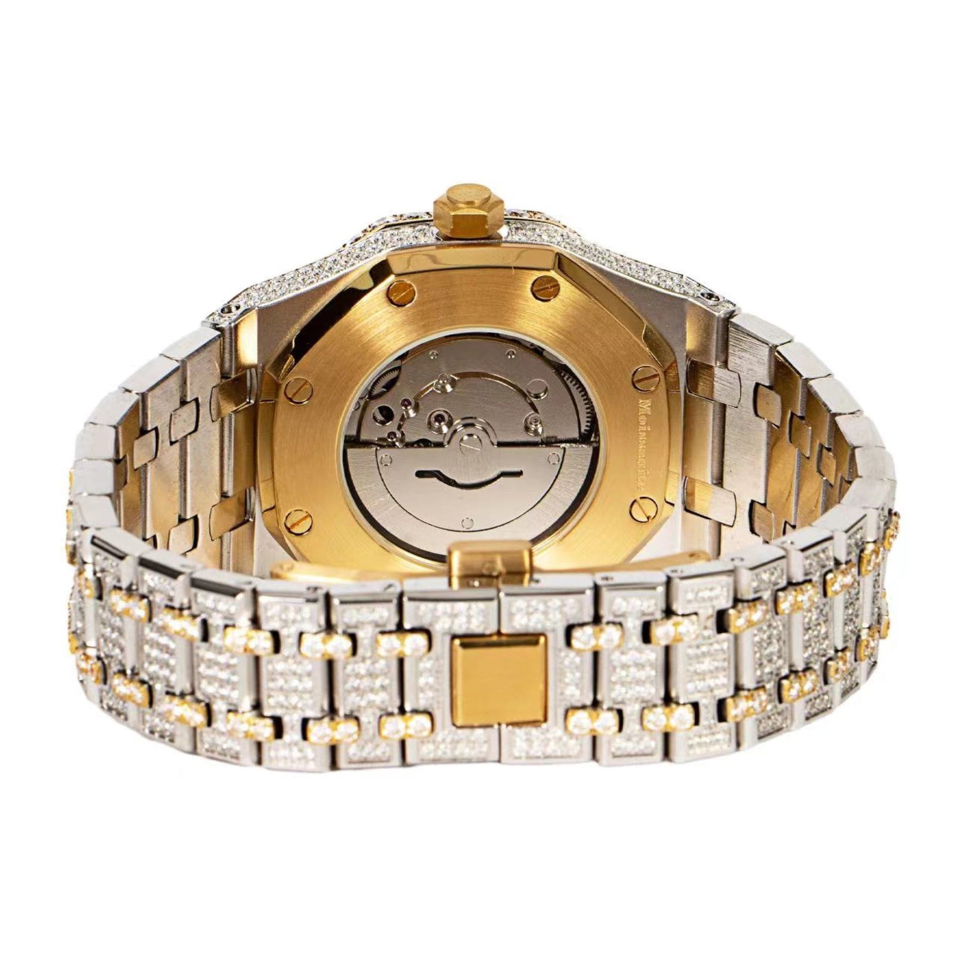 Men'S Stainless Steel Cz Yellow Two Tone Automatic Watch